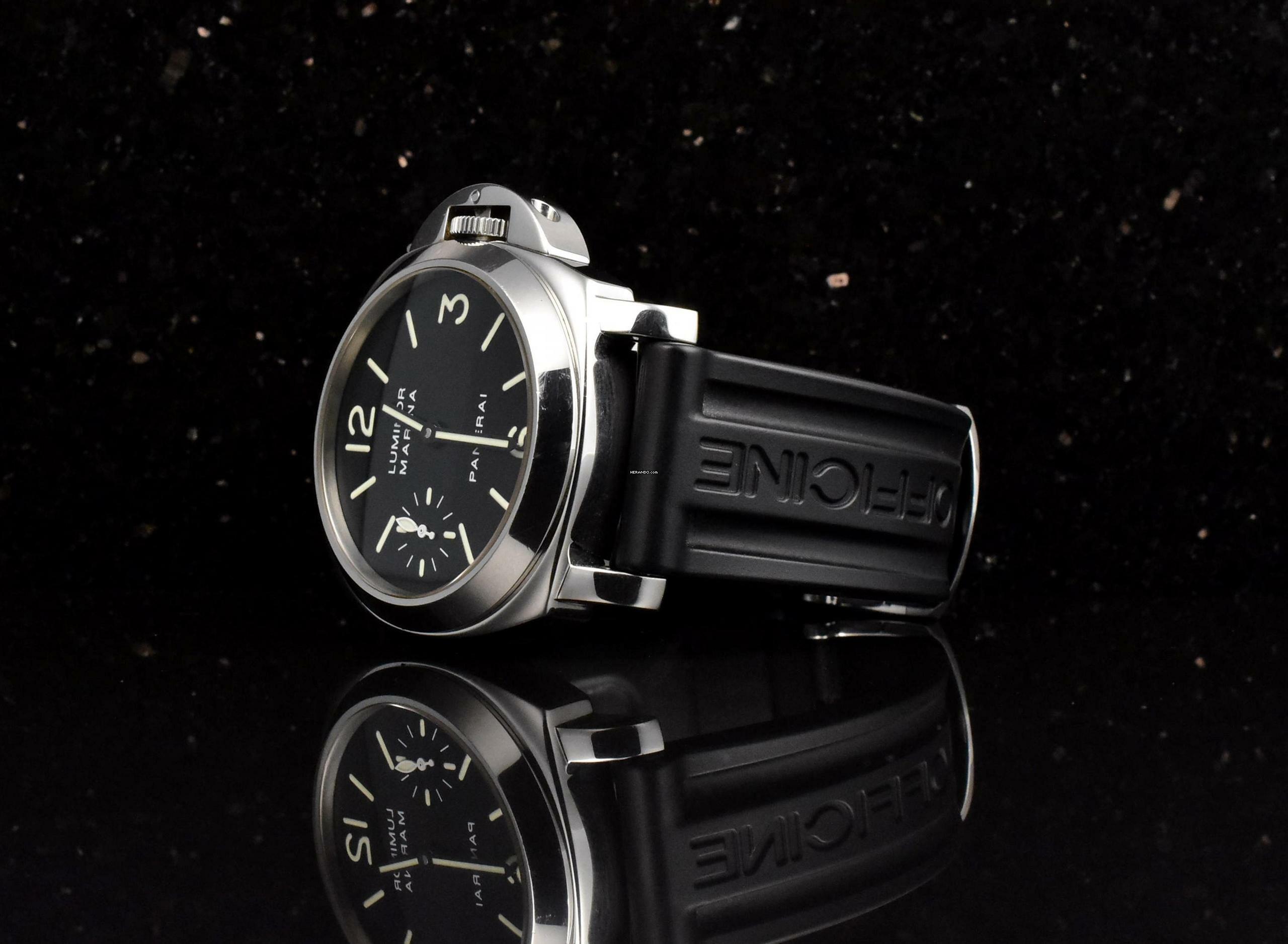 An alle Freunde des guten Geschmacks! Angeboten wird eine sehr schöne Panerai Luminor Marina 44 PAM00001 C-Serie in Stahl gefertigt aus dem Jahr 2000 mit Box & Papieren im Full Set!