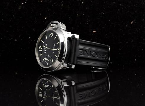 Armband: schwarzes Kautschuk Armband & Panerai Stahl Dornschließen