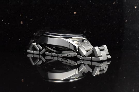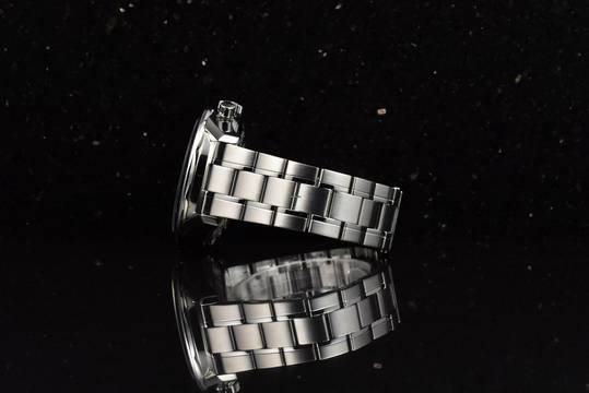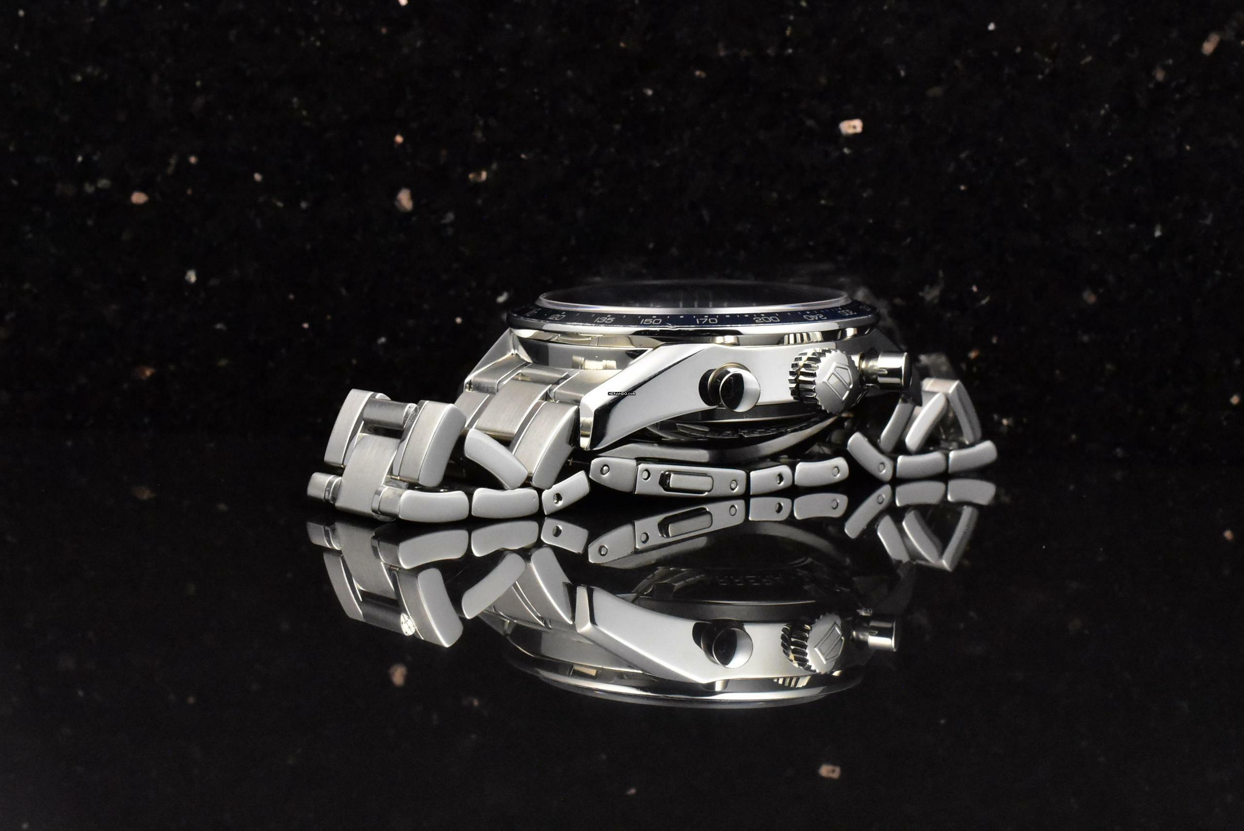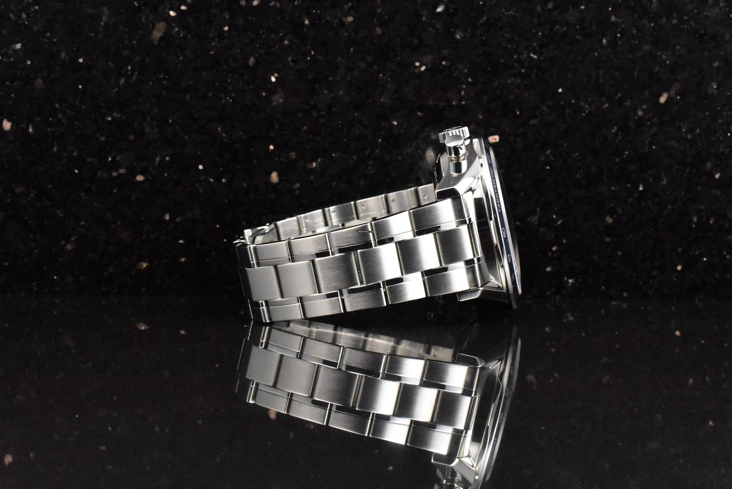 Gehäuse: massives Stahl Gehäuse ohne aktuelle Tragespuren, 41mm Durchmesser, Saphirglas; blaues Ziffernblatt, Sichtboden / Glasboden