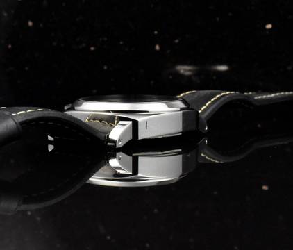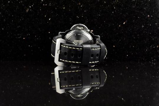 Armband: schwarzes vintage Style Lederarmband & Panerai Stahl Dornschließen