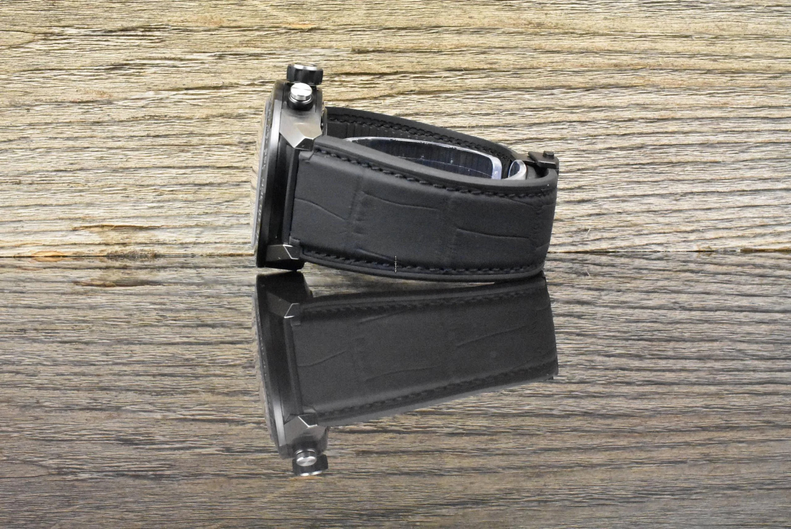 Armband: Kautschuk Krokodilleder Kombination & Titan Faltschließe
