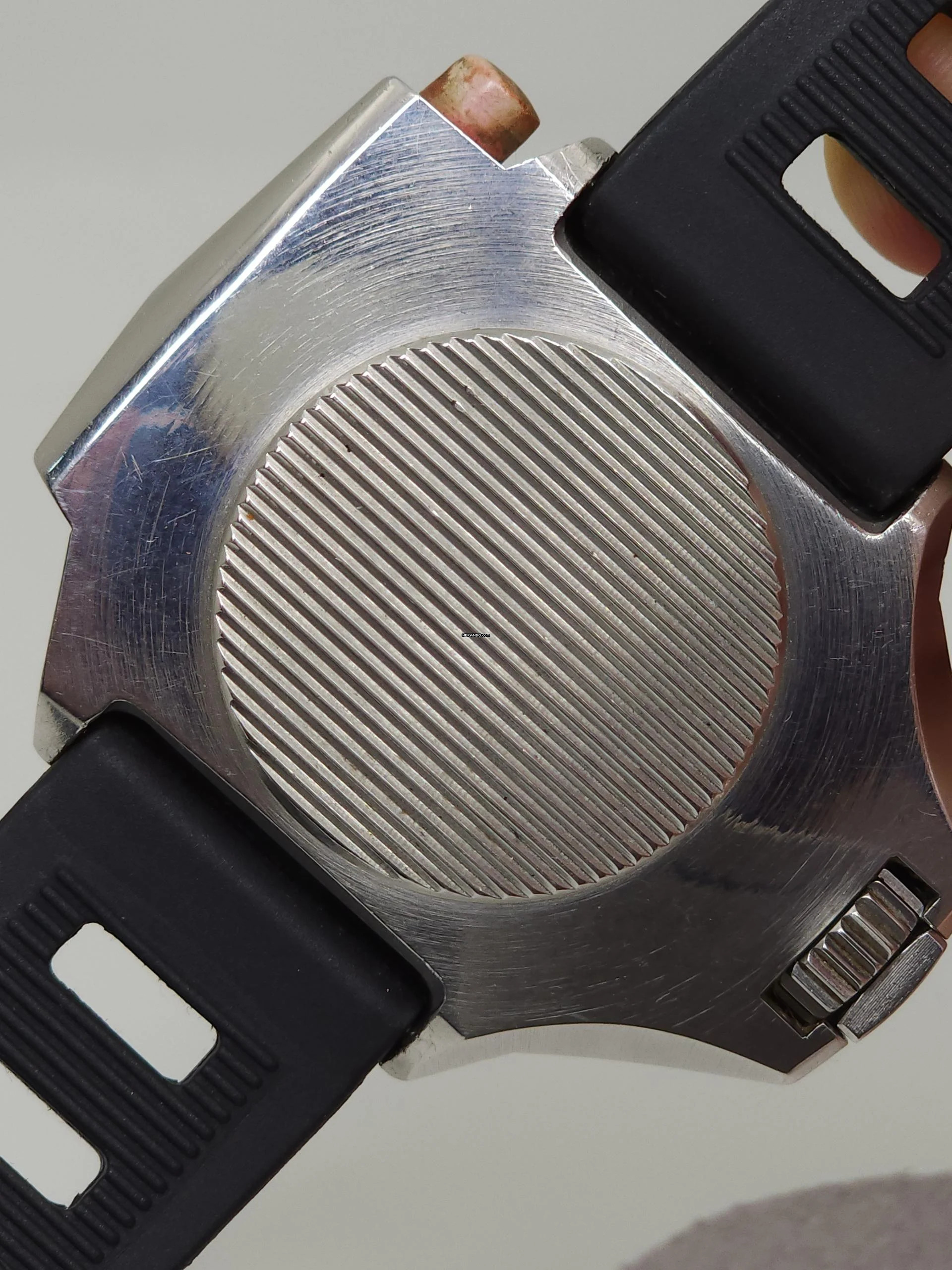 Ein patentierter Mechanismus zur Verriegelung der Lünette, der über den charakteristischen roten Knopf betätigt wird, verhindert ein versehentliches Drehen während des Tauchgangs - ein wichtiges Sicherheitsmerkmal. Mit ihrem kühnen, asymmetrischen Gehäuse und ihrer unübertroffenen Technik war die PloProf ein technisches Wunderwerk ihrer Zeit und bleibt ein Kultklassiker unter Taucheruhrensammlern.