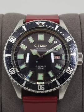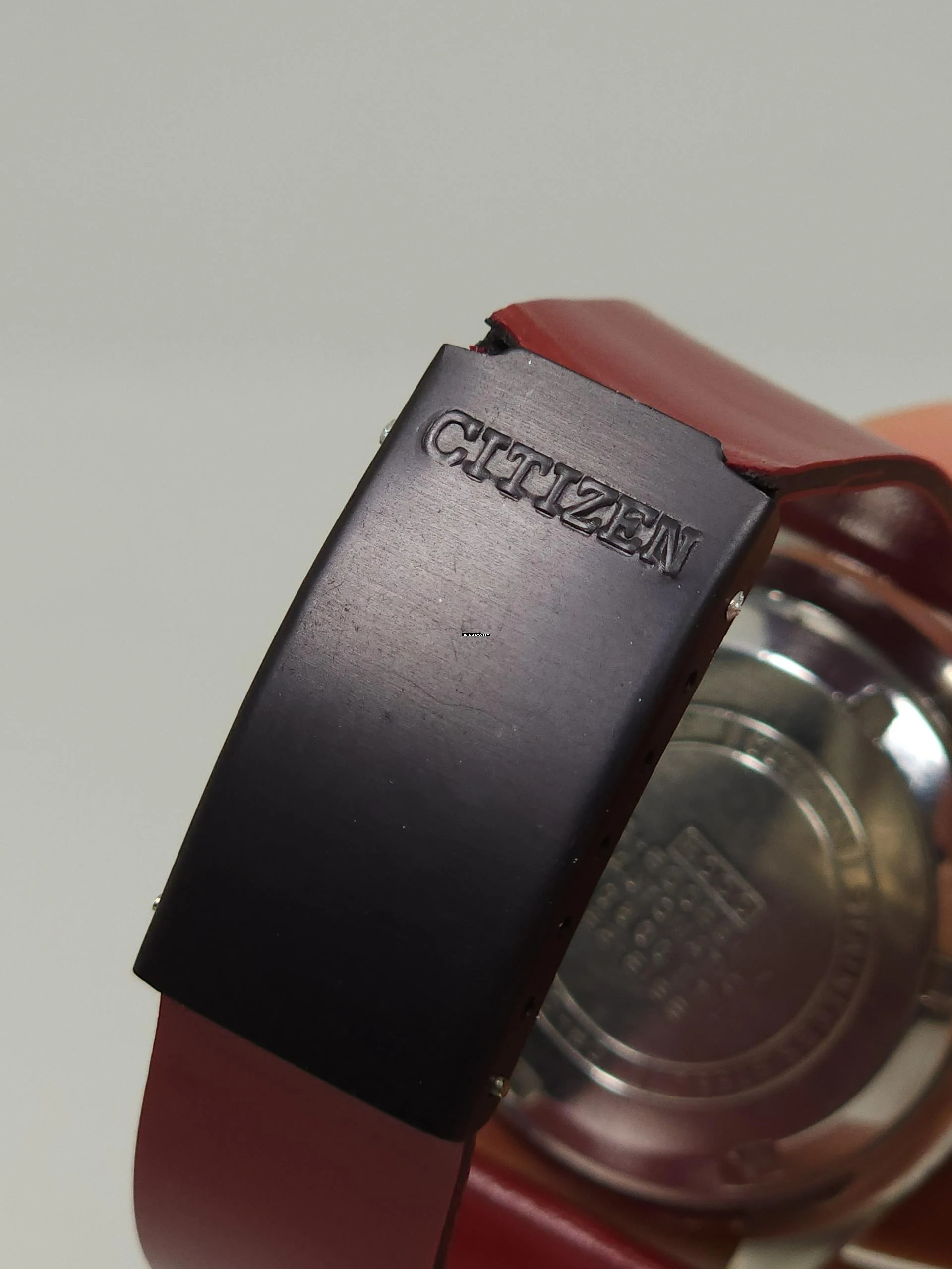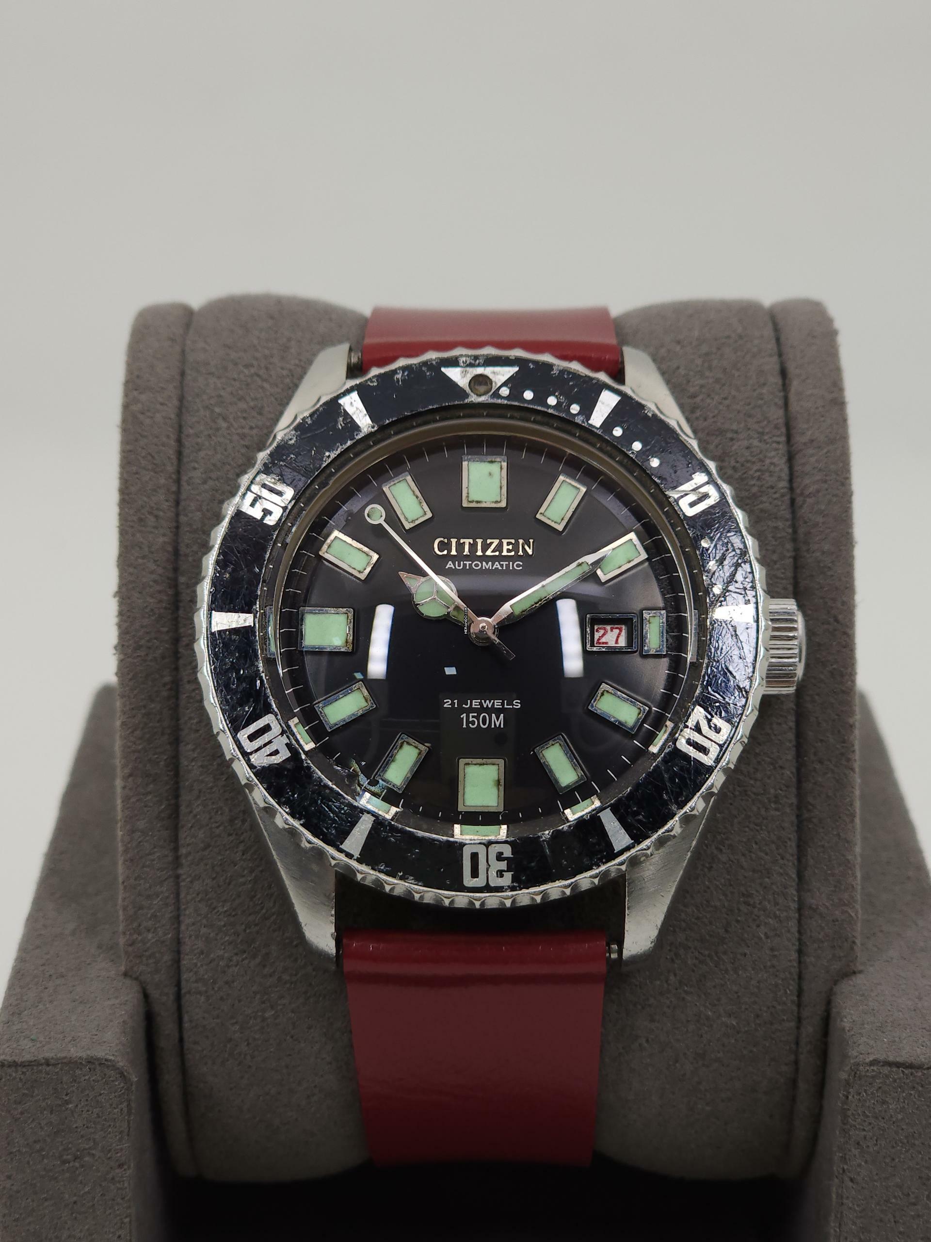 Zifferblatt: Schwarzes Original-Zifferblatt mit Citizen-Signatur; die Datumsfunktion auf der 3-Uhr-Position funktioniert wie vorgesehen. Unibody-Zifferblatt mit sauberer Leuchtmasse und Zeigern.