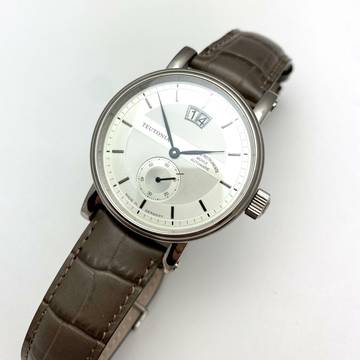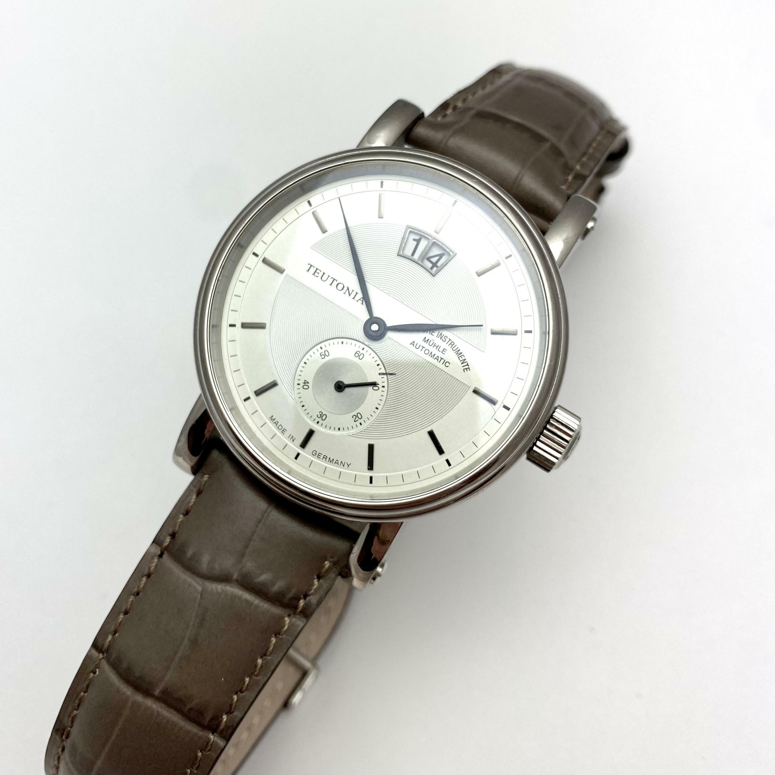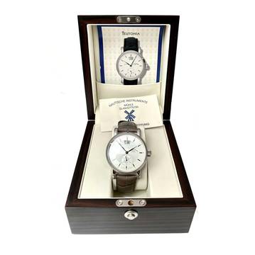 silbernes / guillochiertes Zifferblatt, geschwärzte Zeiger,