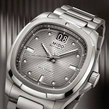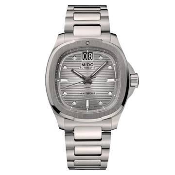 Ein genialer Rückblick! Das aus dem außergewöhnlichen Erbe von MIDO hervorgegangene Gehäuse in TV-Form kehrt bei der Multifort TV Big Date zurück auf die internationale Bühne, ebenso intensiv wie präzise, dank seines beeindruckenden mechanischen Uhrwerks. Das moderne und dynamische Design dieser Schweizer Uhr wird durch ein markantes horizontales Zifferblatt mit gebürstetem Finish und neben seiner besonderen Funktion unterstrichen: dem Großdatum bei 12 Uhr. Das beeindruckende Automatikwerk der neuesten Generation, das Kaliber 80, ist mit einer High-Tech-Spiralfeder aus Nivachron ausgestattet, die eine hervorragende Widerstandsfähigkeit gegen Stöße und Magnetfelder bietet.