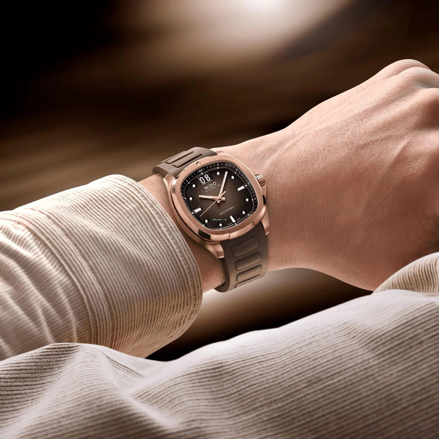 Ein genialer Rückblick! Das aus dem außergewöhnlichen Erbe von MIDO hervorgegangene Gehäuse in TV-Form kehrt bei der Multifort TV Big Date zurück auf die internationale Bühne, ebenso intensiv wie präzise, dank seines beeindruckenden mechanischen Uhrwerks. Das moderne und dynamische Design dieser Schweizer Uhr wird durch ein markantes horizontales Zifferblatt mit gebürstetem Finish und neben seiner besonderen Funktion unterstrichen: dem Großdatum bei 12 Uhr. Das beeindruckende Automatikwerk der neuesten Generation, das Kaliber 80, ist mit einer High-Tech-Spiralfeder aus Nivachron ausgestattet, die eine hervorragende Widerstandsfähigkeit gegen Stöße und Magnetfelder bietet.