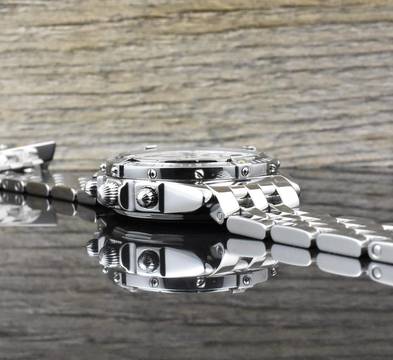 Werk: Automatik, Chronograph, Datum und Tagesanzeige – Uhrwerk vom Uhrmachermeister kontrolliert