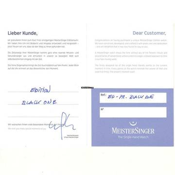 Sie erhalten eine Einzeiger Automatik Herrenuhr aus dem Hause MeisterSinger - Modell Edition Black One.