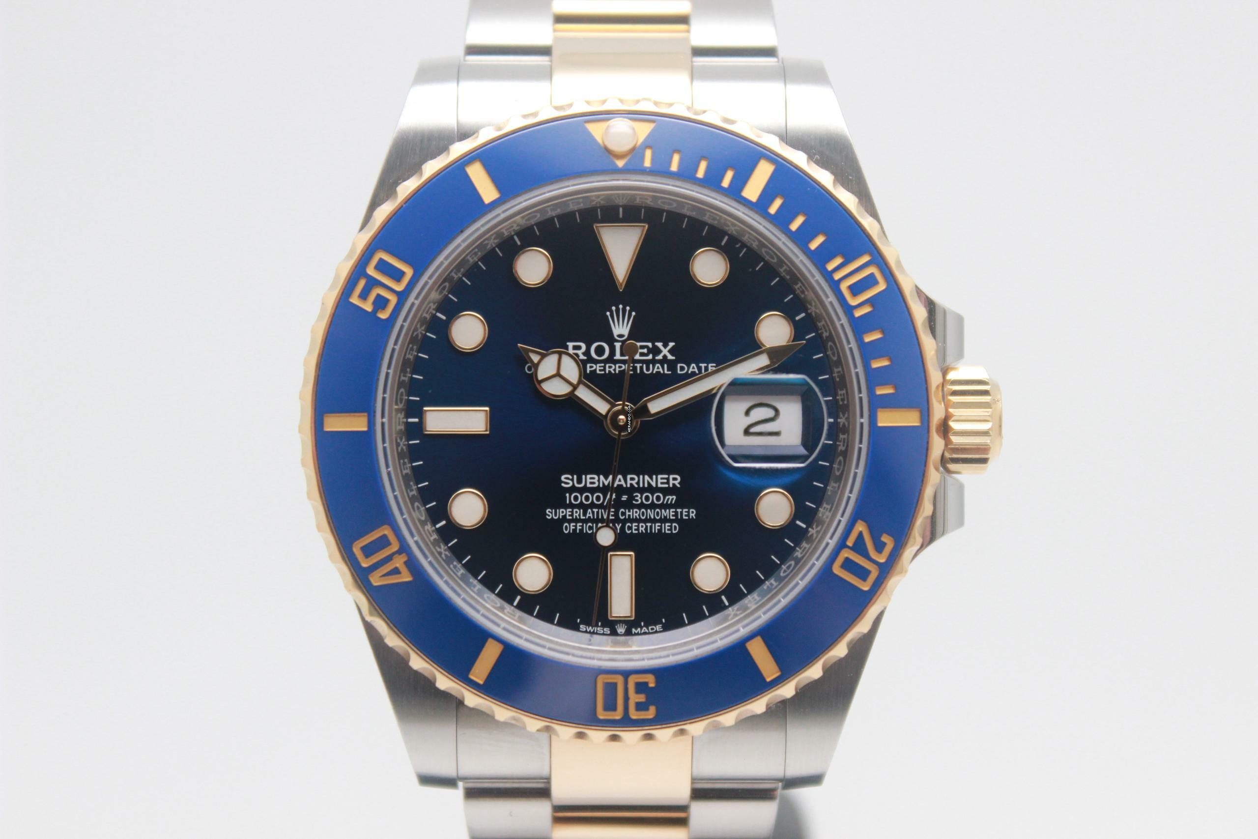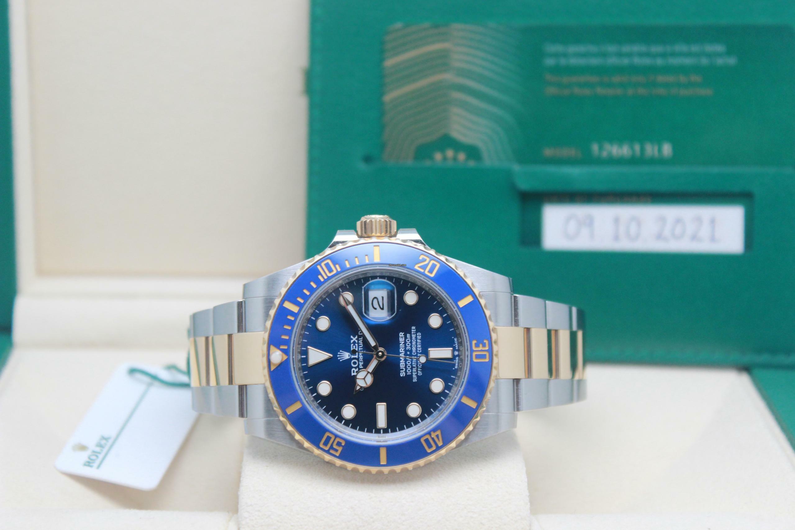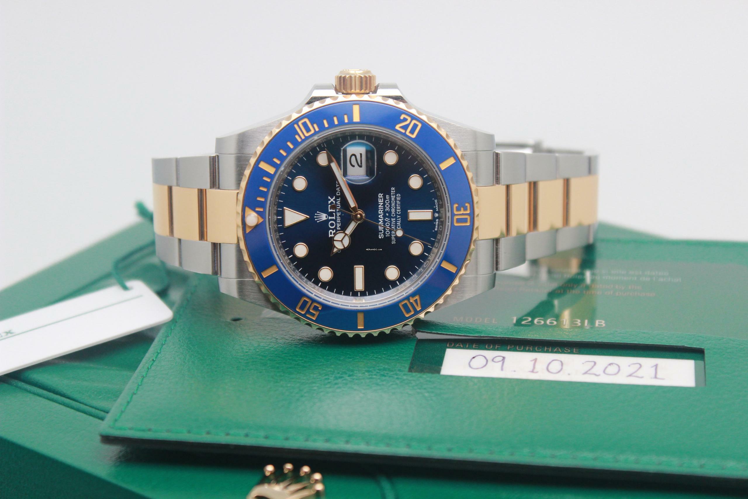 Rolex Submariner Date 126613LB Full Set 2021, Stahl- und Goldgehäuse 41 mm, blaues Zifferblatt, Gelbgoldlünette mit blauem Keramikeinsatz, satiniertes Stahl- und poliertes Gold-Oyster-Armband mit Oysterlock-Schließe aus Stahl und Gold. Dieses Modell ist mit einem mechanischen Rolex-Manufakturwerk mit Automatikaufzug, Kaliber 3135, mit Datumsanzeige bei 3 Uhr ausgestattet und wird mit Original-Rolex-Box und Garantiekarte geliefert.Alle unsere gebrauchten Uhren werden in unserer Werkstatt geprüft und zertifiziert, die autorisiert ist, verschiedene Marken zu warten, wie z.B.: