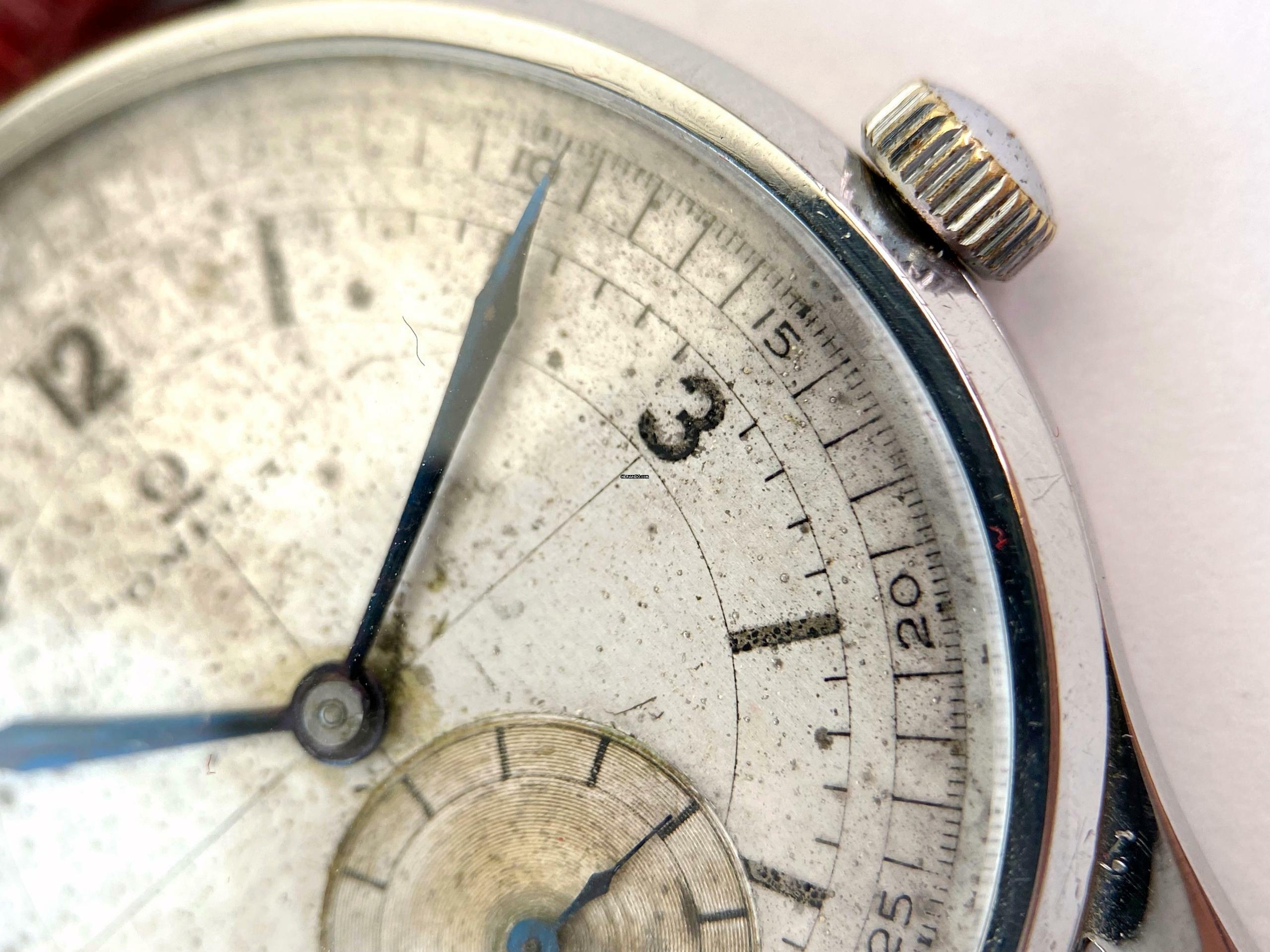 - Das unrestaurierte Ziffernblatt hat starke Patina.