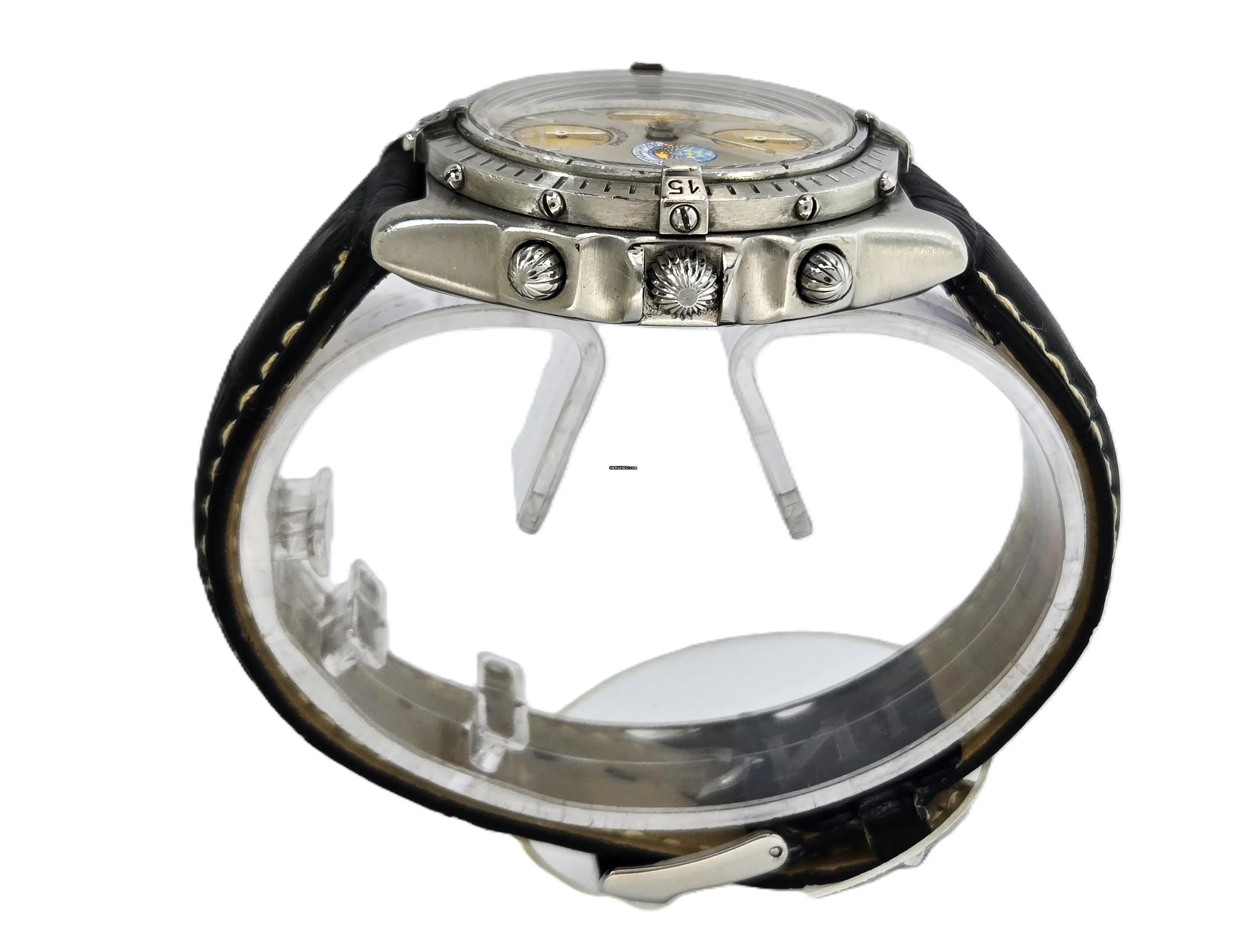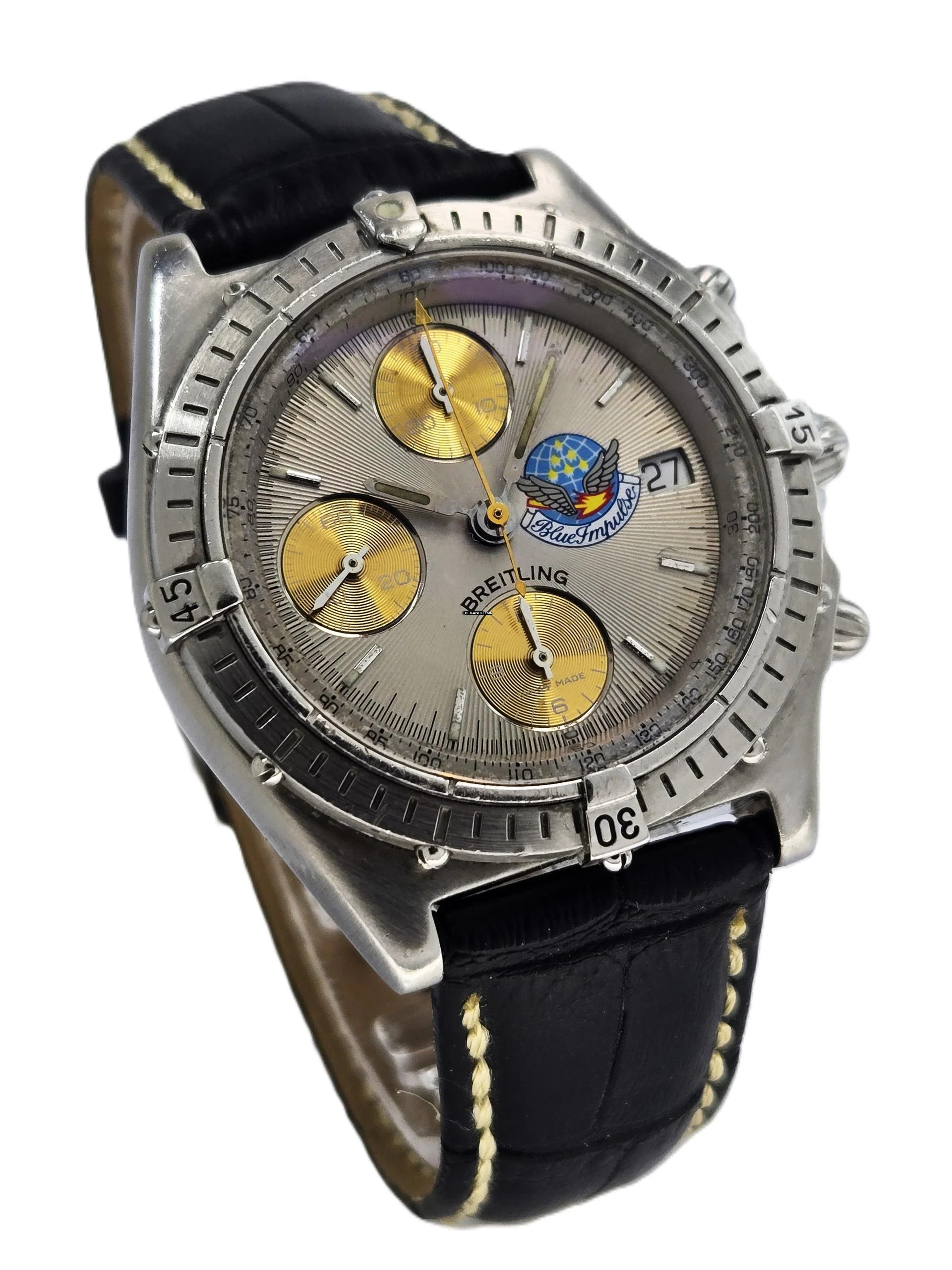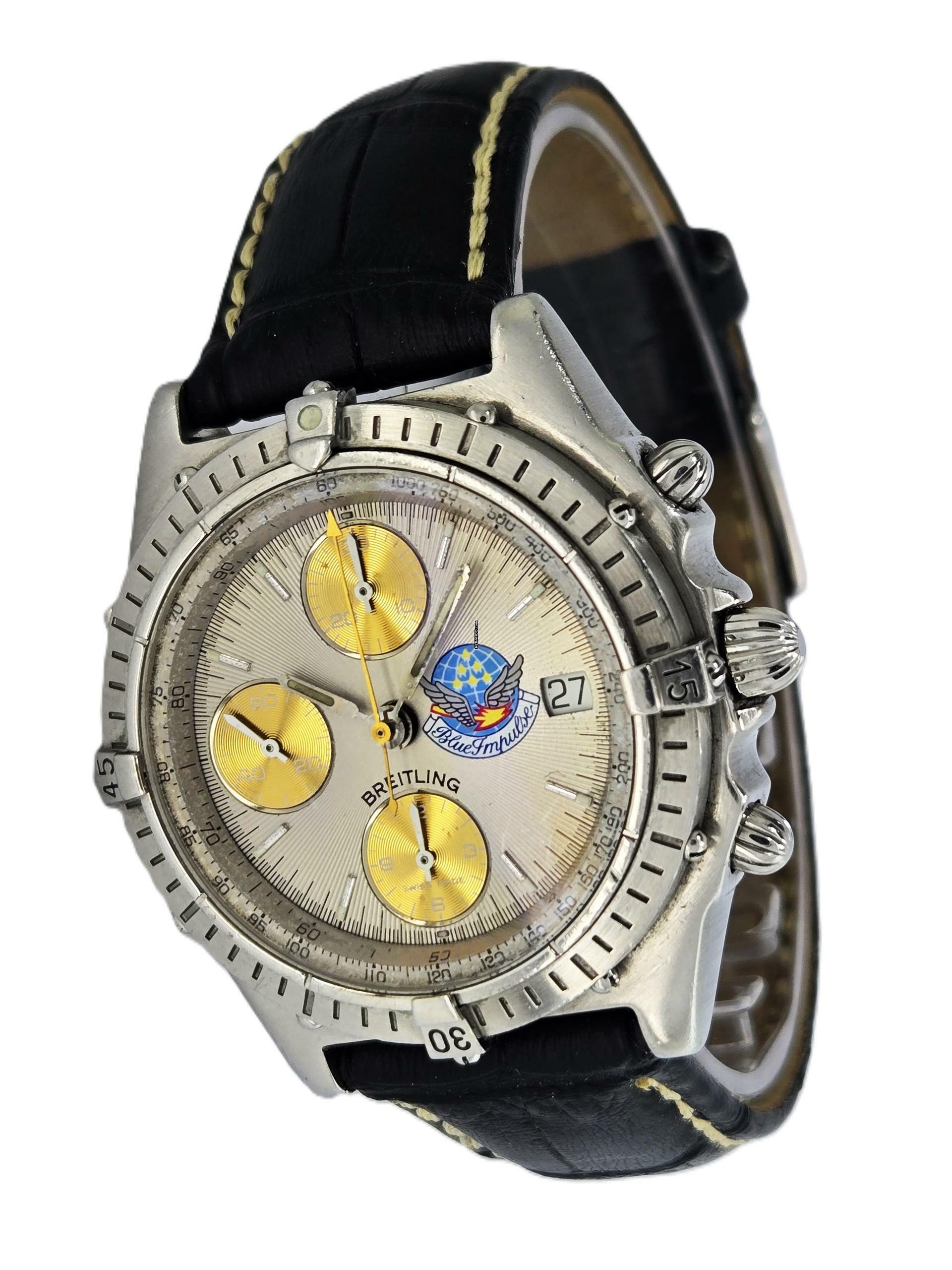 Die Breitling A13048 Blue Impulse ist eine limitierte Sonderedition der Chronomat-Reihe, die in den 1990er-Jahren (ca. 1994) hergestellt wurde. Sie entstand in Zusammenarbeit mit dem japanischen Kunstflugteam „Blue Impulse“ (Japan Air Self-Defense Force – JASDF).