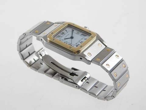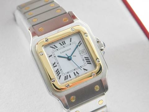 Aus privater Uhrensammlung !! Cartier Santos Automatik in Stahl Gold XL Herrengröße mit Datum auf 3 Uhr