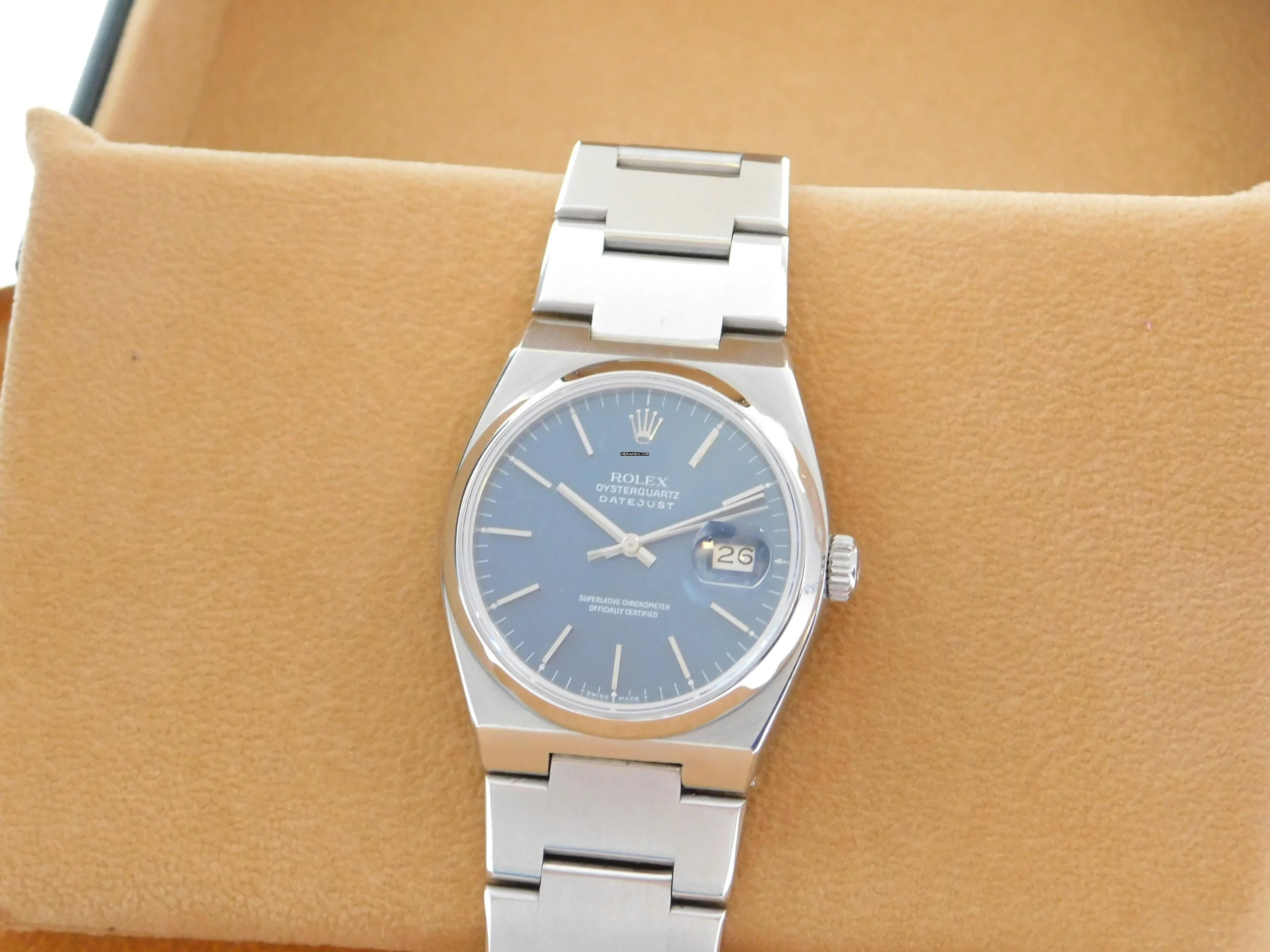 Rolex Datejust Oysterquartz Herrenuhr 36 mm im Original Zustand blaues Blatt Volles Top Band alle Glieder von 1988 L Serie