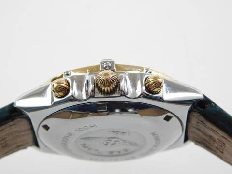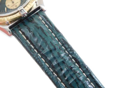 Breitling Chronomat mit seltenem grünen Zifferblatt und original Breitling Hai Lederband, ebenso in grün, mit der original Faltschließe Ref. B 13050 No 1 08494