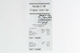 - Wasserdichtigkeit*: ja. Das Prüfprotokoll mit Prüfdruckangabe liegt bei.
