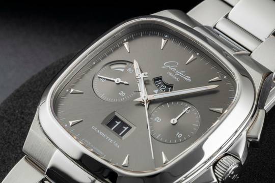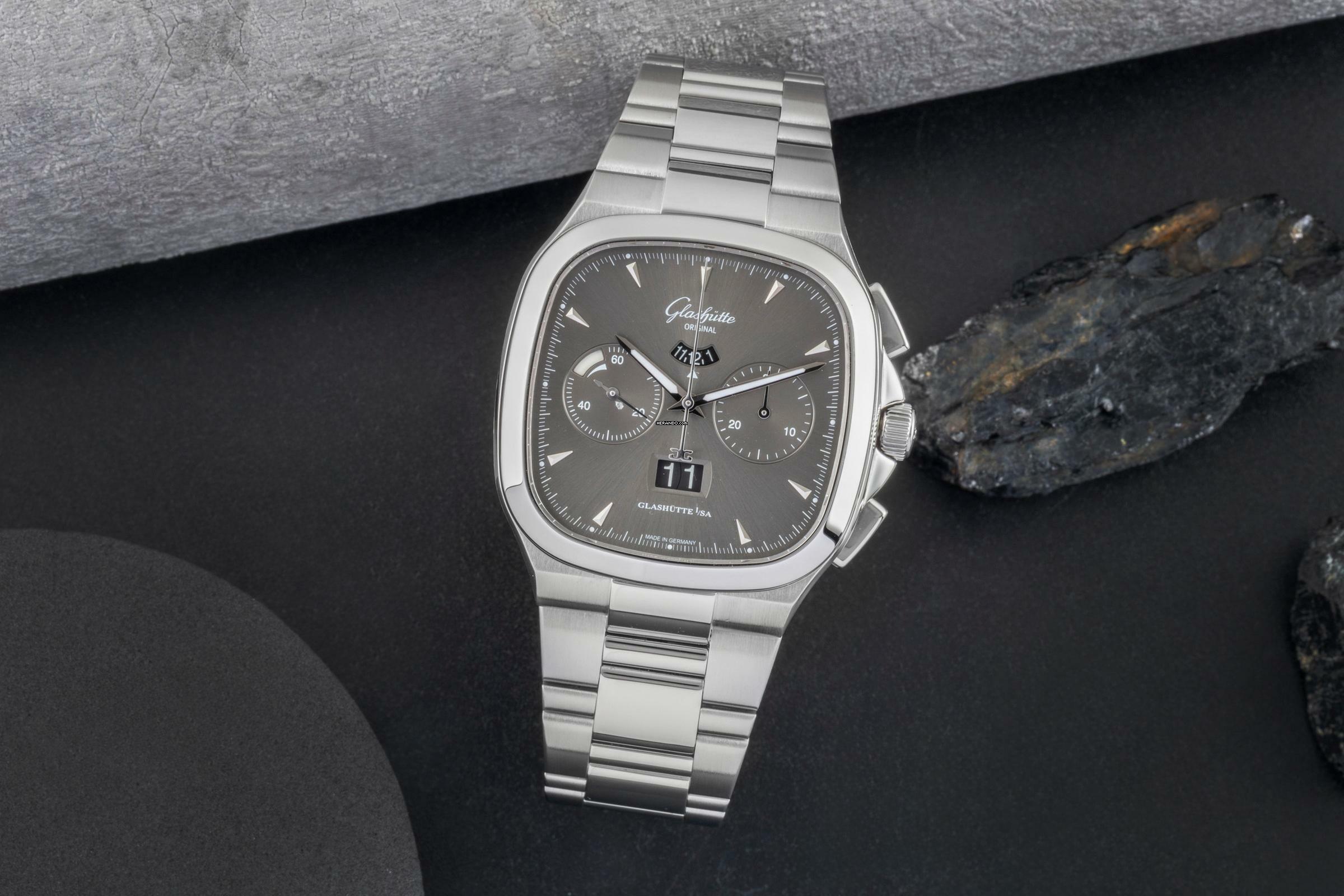 Glashütte Original Seventies Chronograph Panoramadatum Stahl Automatik Herrenuhr Ref. 1-37-02-01-02-70