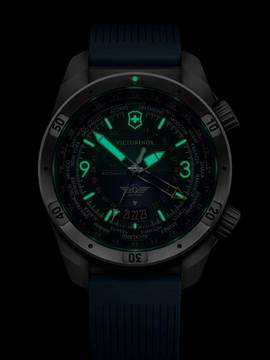 Das Herzstück dieses Zeitmessers ist ein Automatik Uhrwerk, das, wie für Victorinox Uhren üblich, eine präzise Zeitmessung garantiert und folgende Funktionen bereitstellt: Stunde, Minute, Sekunde, Datum, Stoßfest, 3 Zeitzonen, GMT, Gangreserve.