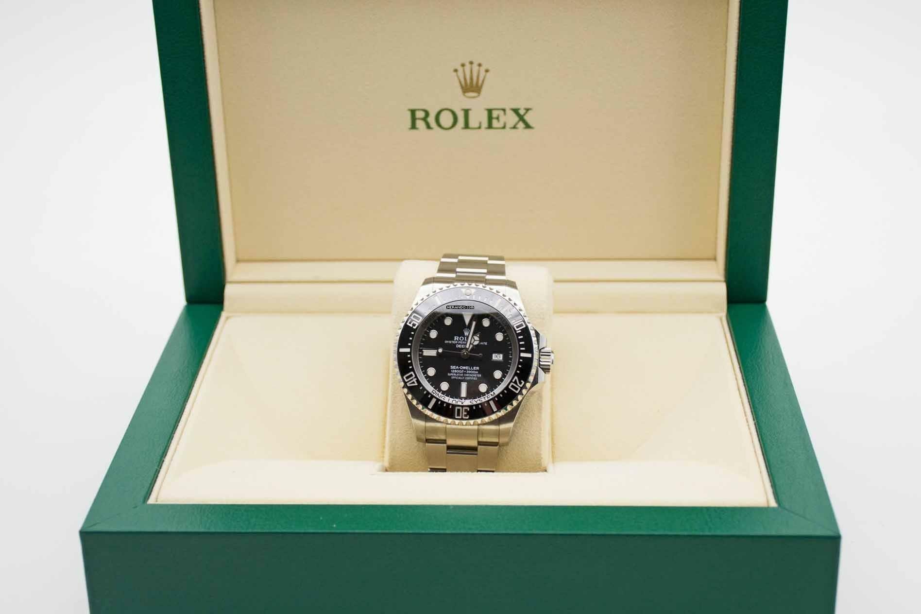Sea-Dweller 126660, 44 mm Gehäuse mit schwarzem Zifferblatt, Keramik Lünette und satiniertem Oysterarmband. Perfektes Fullset in Rolex Box mit Umkarton, Sea-Dweller Anleitung, Garantie Booklet, grünem Lederetui und Rolex Garantiekarte aus 2018. Die Uhr wurde nur wenig getragen und befindet sich in perfektem und neuwertigem Zustand. Inzahlungnahmen sind nur im Direktgeschäft möglich. Bitte sprechen Sie uns hierzu an. Sea-Dweller Deepsea 126660, 44 mm case with black dial, ceramic bezel and Rolex Oyster bracelet. Perfect full set in Rolex inner and outer box, with Sea-Dweller manual, green leather wallet, warranty booklet and Rolex warranty card from 2018. The watch comes in perfect and mint condition like new. Trades are possible. Please keep in mind that our complete inventory is stored in our bank safe for safety purposes.