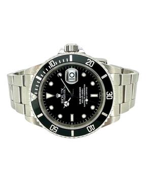 Die Rolex Submariner Date Referenz 16610 ist eine der ikonischsten Taucheruhren der Welt. Gefertigt aus robustem Edelstahl überzeugt sie mit einem zeitlosen Design und einer außergewöhnlichen Widerstandsfähigkeit. Das 40 mm große Gehäuse ist mit kratzfestem Saphirglas ausgestattet und schützt das tiefschwarze Zifferblatt mit Datumsanzeige und Zykloplupe zuverlässig.