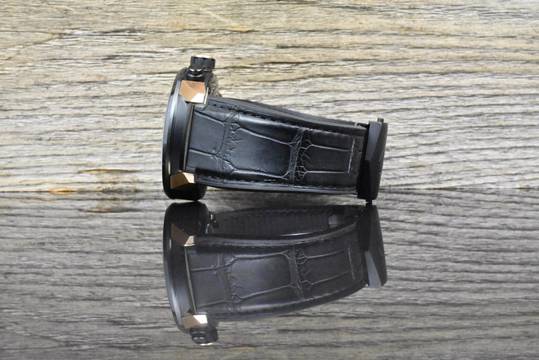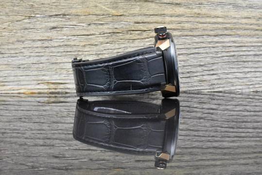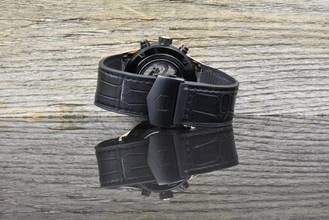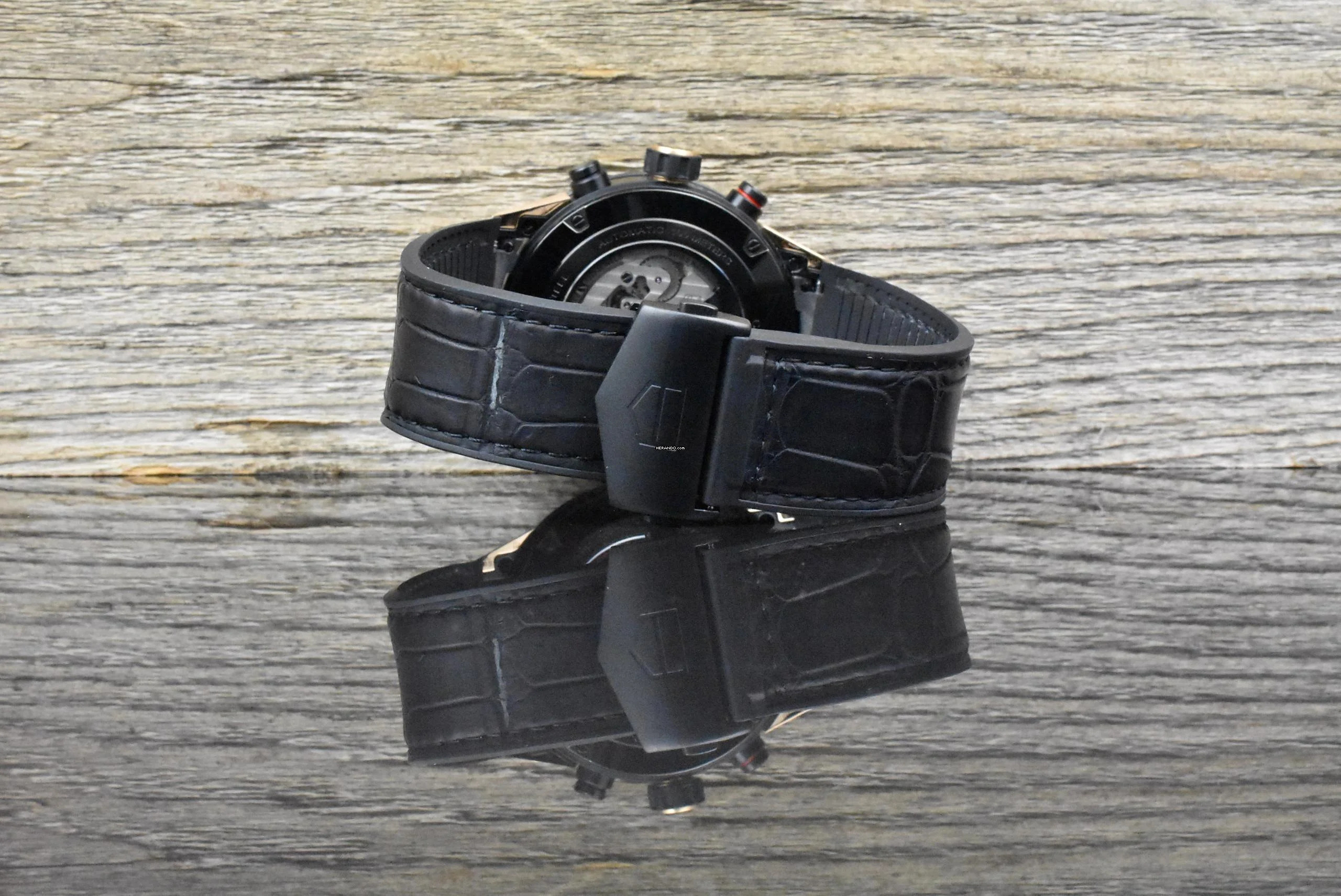Armband: schwarzes Krokodil / Kautschuk Armband & Titan Faltschließe