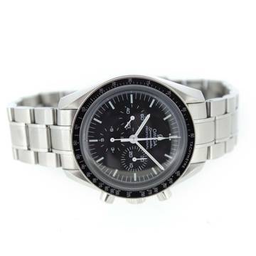 Diese Omega Uhr verfügt über ein 42 mm Stahlgehäuse. Die Uhr hat ein schwarzes Zifferblatt. Die Uhr ist mit einem Stahlband ausgestattet.