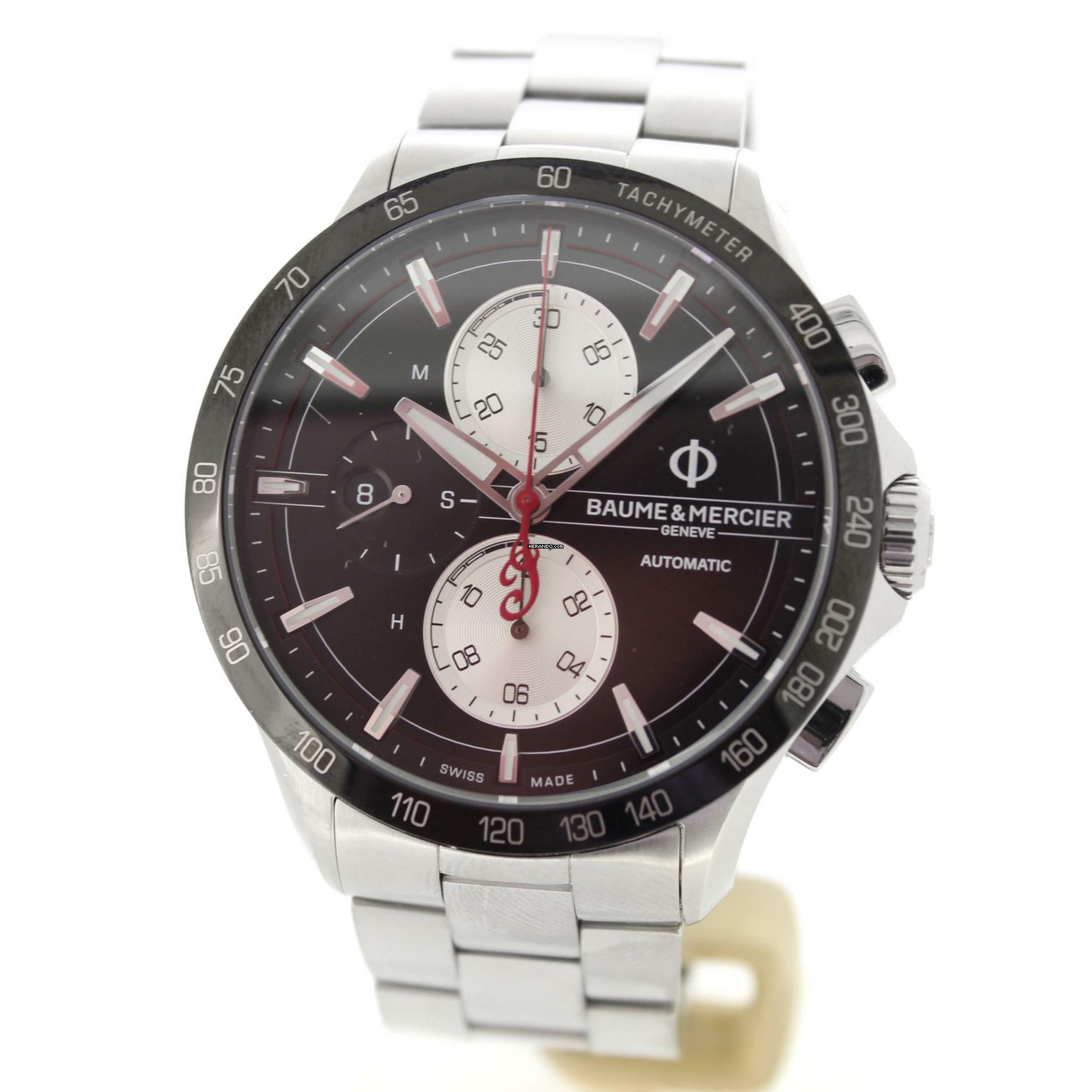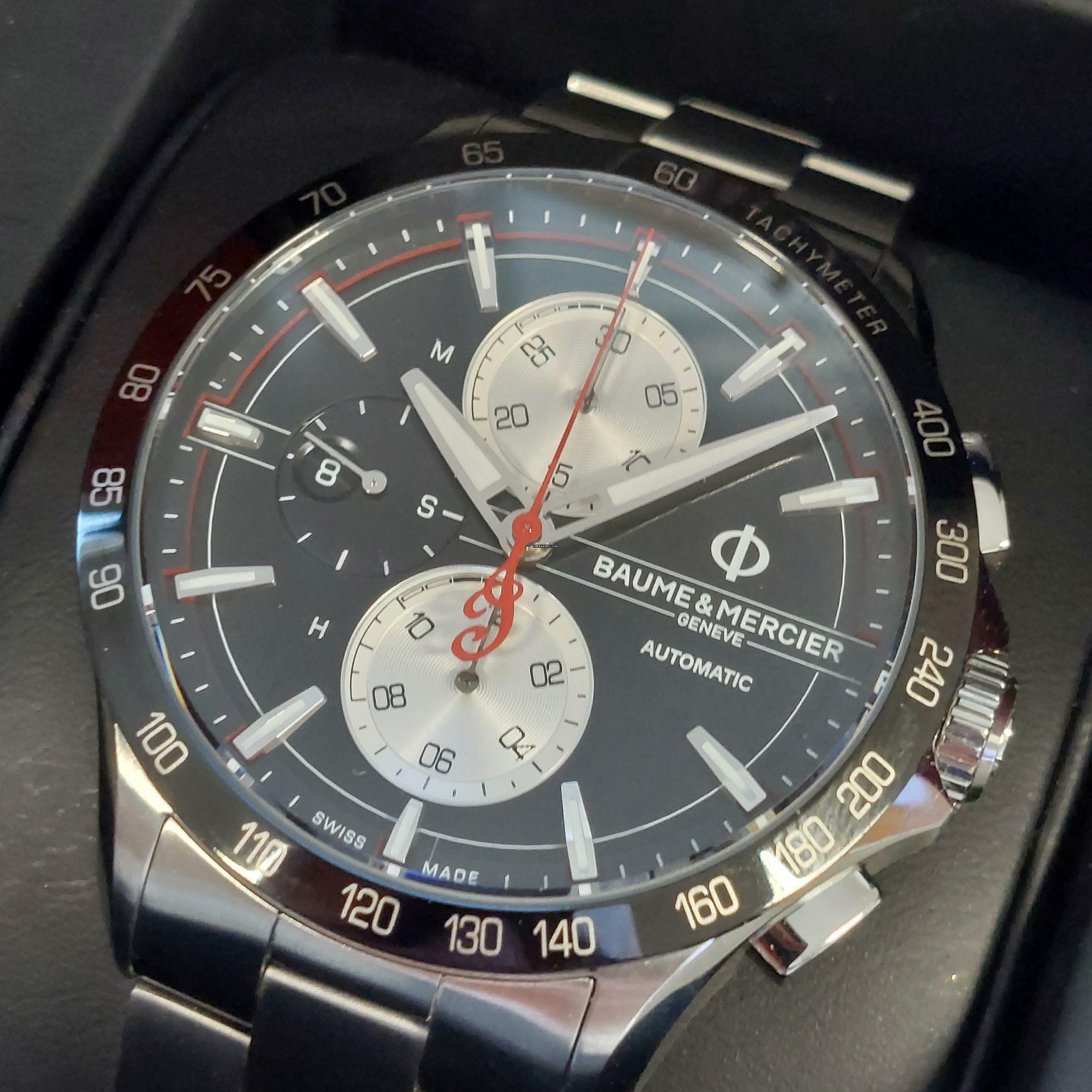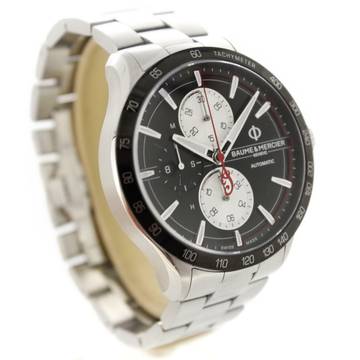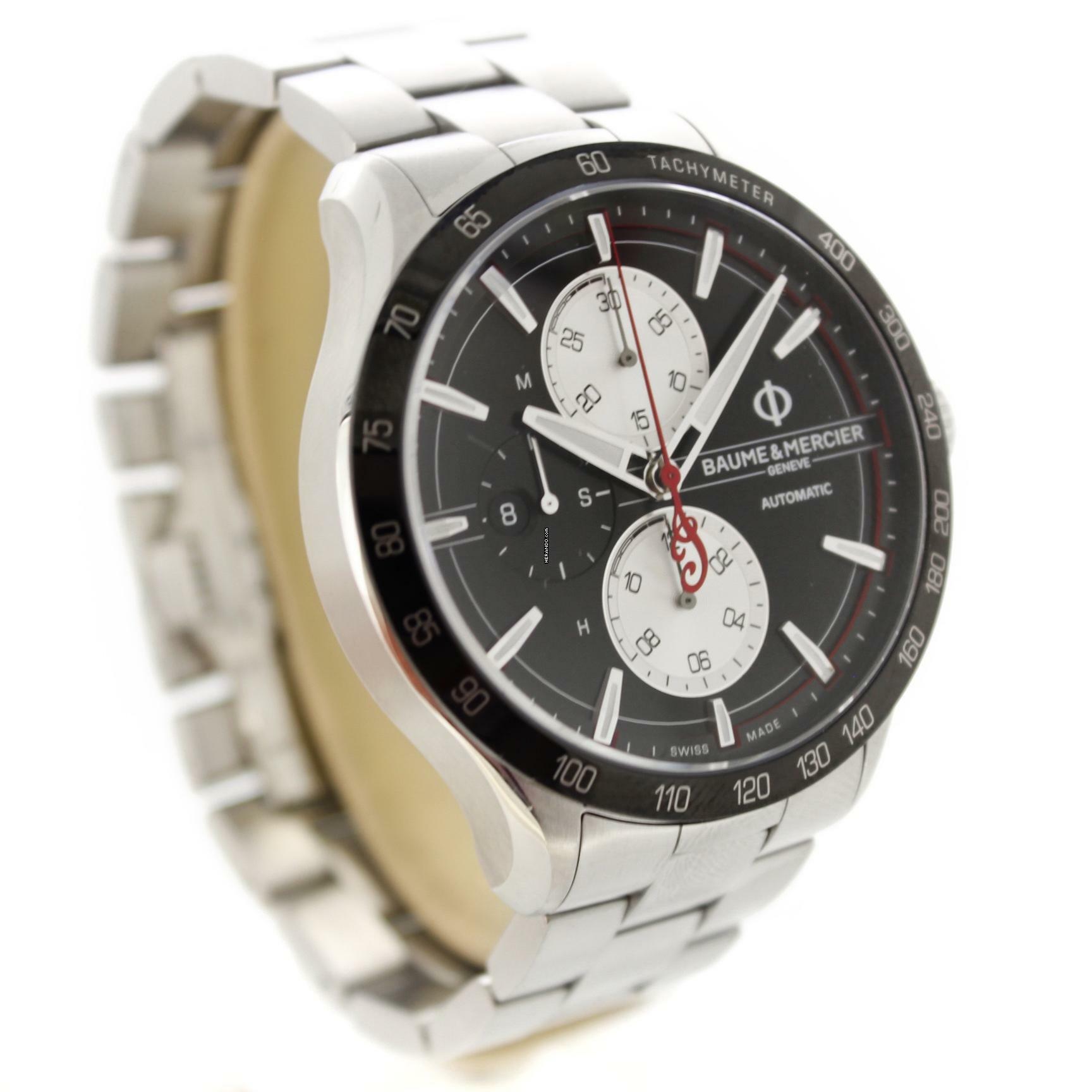 Diese Baume & Mercier Uhr verfügt über ein 44mm Stahlgehäuse. Die Uhr hat ein schwarzes Zifferblatt. Die Uhr ist mit einem Stahlband ausgestattet.