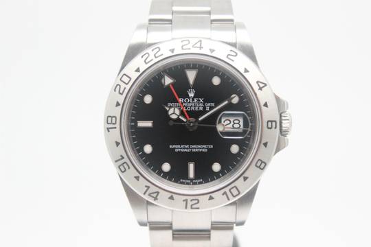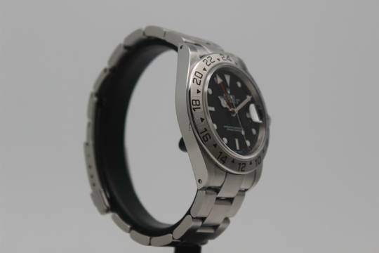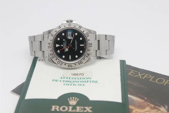 Rolex Explorer II 16570 Full Set 2002, cassa in acciaio da 40 mm, quadrante nero, lunetta in acciaio, bracciale Oyster in acciaio satinato con chiusura Fliplock in acciaio. Questo modello è dotato di un movimento meccanico a carica automatica calibro 3185, con datario ad ore 3. Corredato di scatola e garanzia originali Rolex.