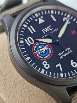 The Pilot's Watch Mark XVIII TOP GUN Edition "SFTI" is the civilian version of the special military edition that IWC has produced exclusively for graduates of the United States Navy Fighter Weapons School.
