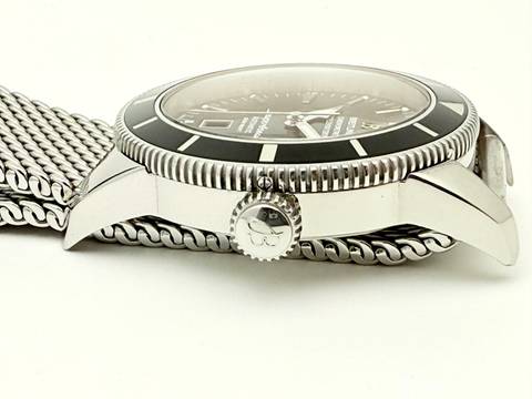 For sale is this nice Breitling Superocean Heritage 46 mm. Steel with a Black dial and Black Steel bezel on a Steel-Bracelet ( The Steel bracelet is Not from Breitling ).