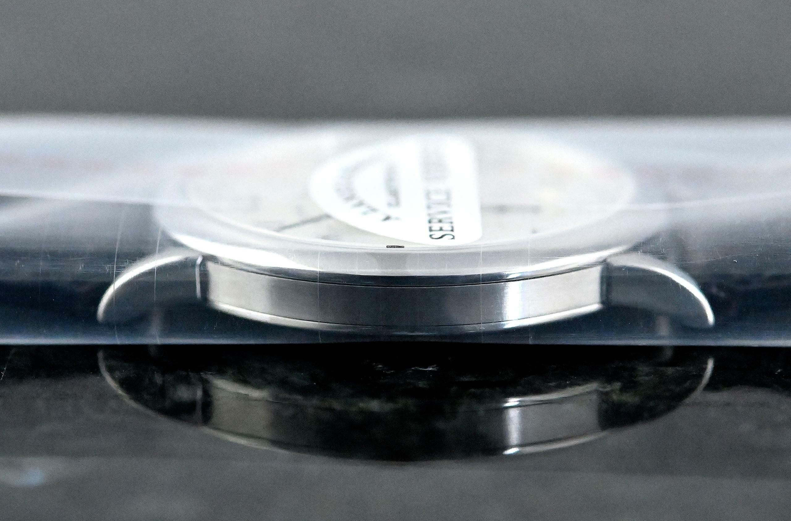 Beautiful A. Lange & Söhne 1815 small seconds | reference number 206.025 | in 950 platinum | ALS hand-wound calibre L941.1 | watch was serviced by A. Lange & Söhne in Glashütte in October 2025 (a complete service was carried out – invoice for €2,520 enclosed) | now in unworn condition and still service-sealed | diameter of 36 mm | ALS leather strap with an original Lange buckle in 950 platinum | delivered to its new owner as a full set, with the original Lange box – original guarantee certificate (sold in August 2000 by the German Lange concessionaire Hollfelder) – 1815 booklet/instructions – service box with outer box – Lange service documents/invoice from October 2025.