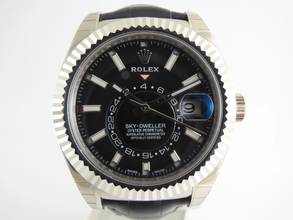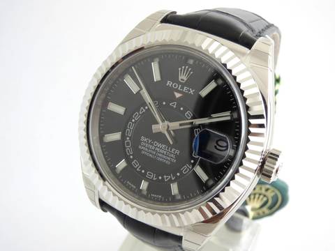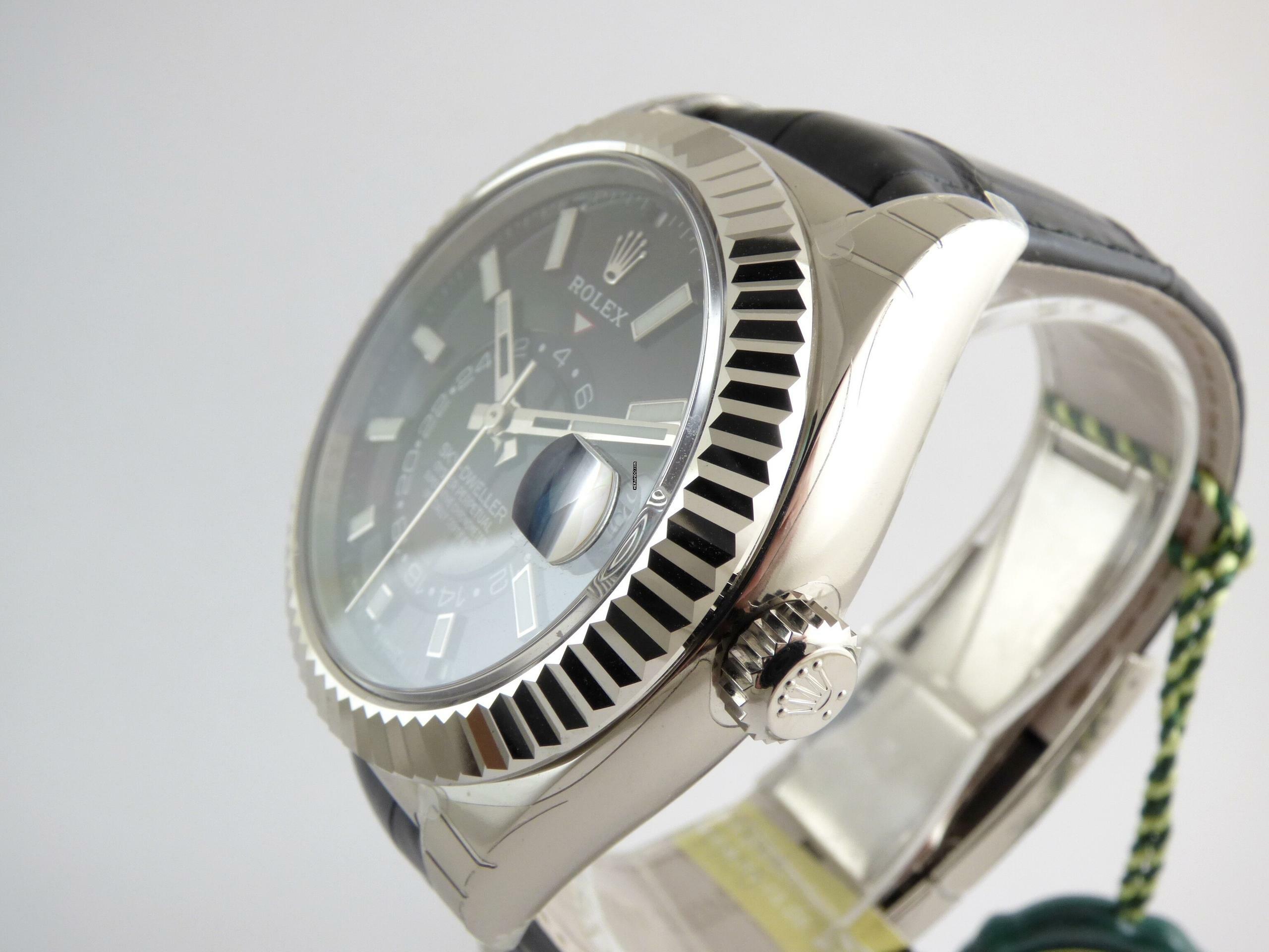 hinweis: ungetragener Zustand, mit allen Aufklebern noch an der Uhr Version Rolex Sky Dweller mit Rolex Lederband in 750/000 Weißgold mit schwarz/grauem Zifferblatt Ref.: 326139, Random-Seriennummer, lc = 100, komplettes Set mit orignal Box & original Zertifikat. ---
