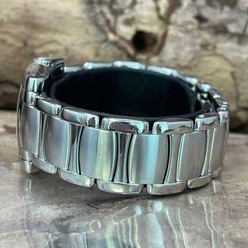 Case: stainless steel with sapphire glass (Minor age-related wear to the anti-reflective coating on the crystal)