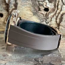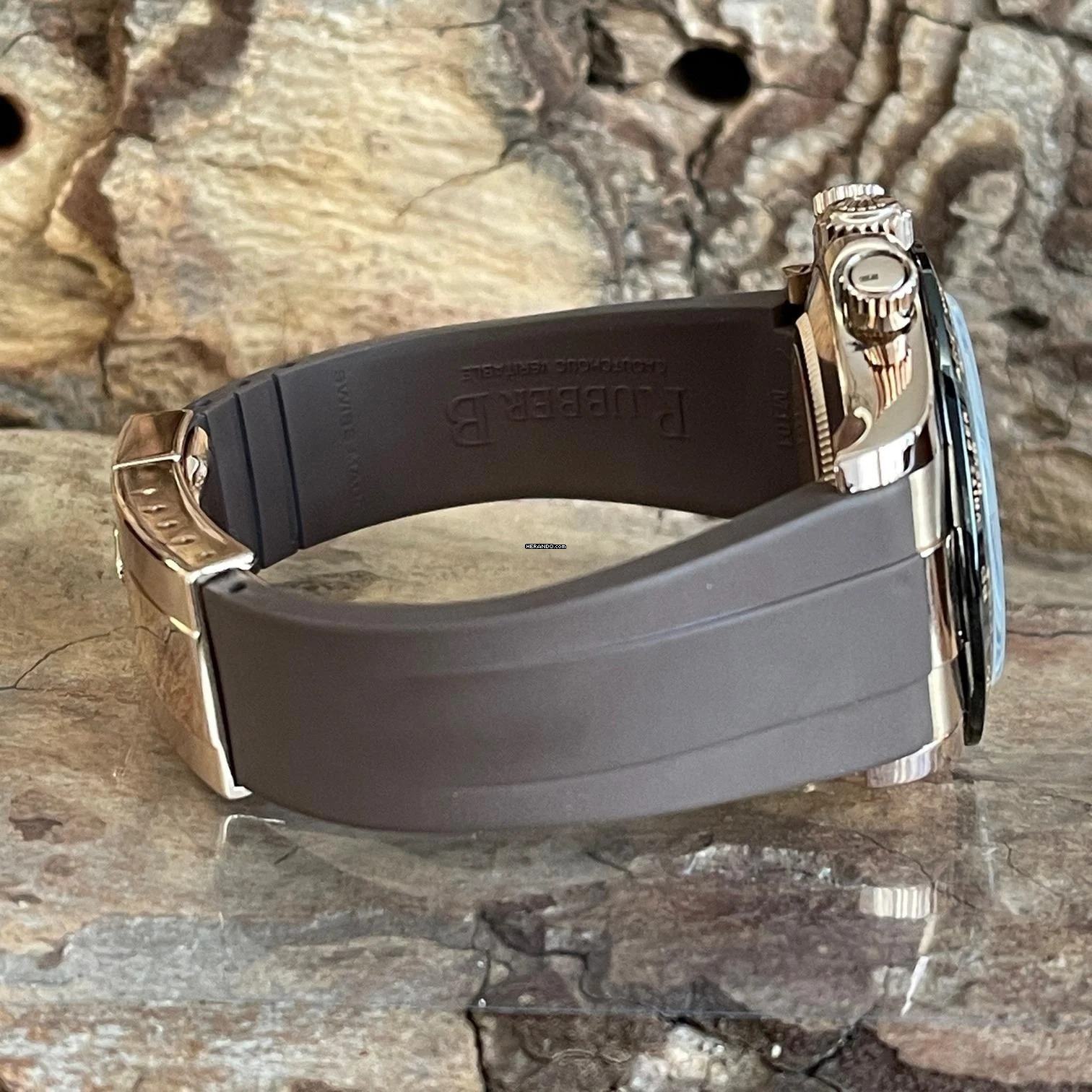 Case: 18kt Rosé gold, ceramic bezel, sapphire crystal, screw-down crown