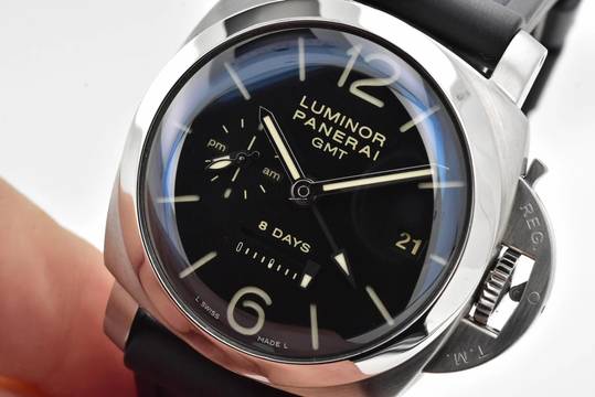 Movement: Panerai manual, Hour, Minute Hands, GMT, Date