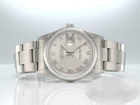 Fantastisches silbergraues Zifferblatt mit großen römischen Zahlen