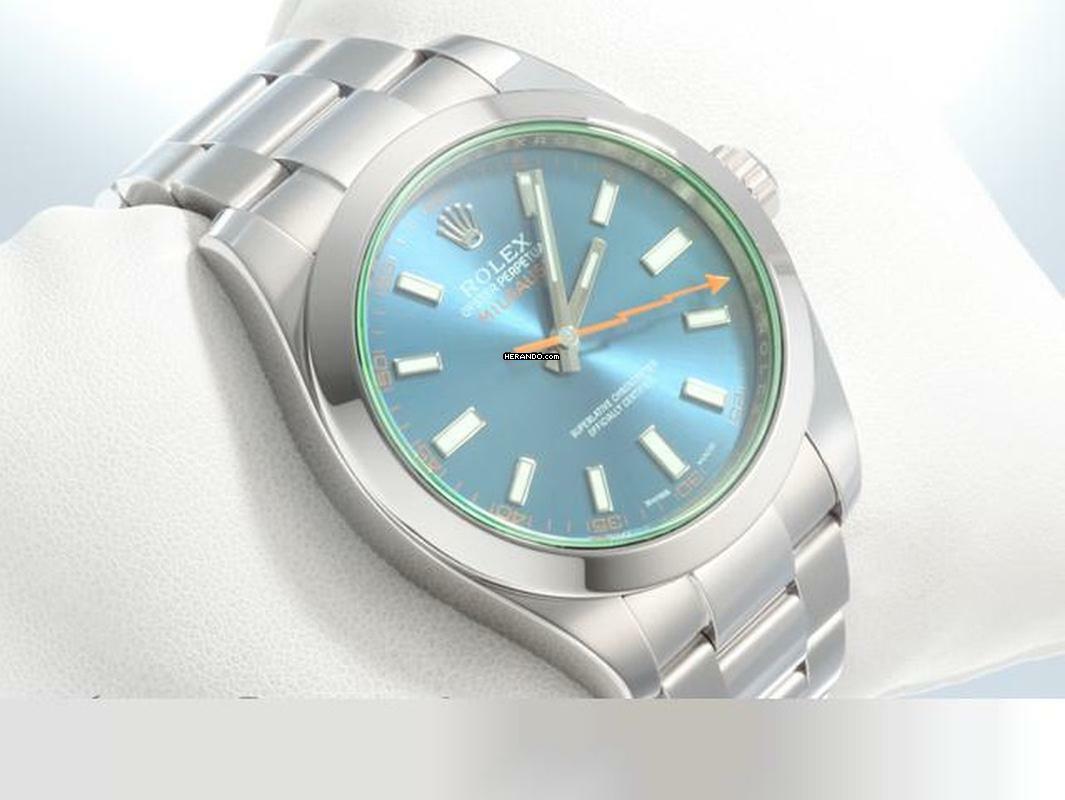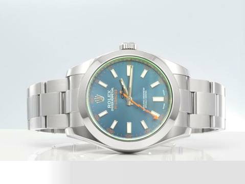 Diese wundervolle Rolex ist aus Edelstahl gefertigtFantastisches blaues Zifferblatt mit Stabindices und mit einem grünen Saphirglas
