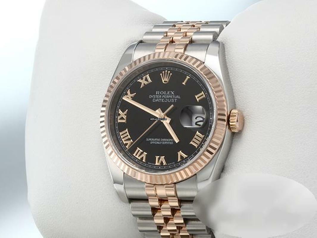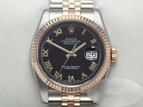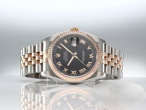 Diese wundervolle Rolex ist aus Edelstahl und feinstem Roségold 750Fantastisches schwarzes Zifferblatt mit großen römischen Zahlen
