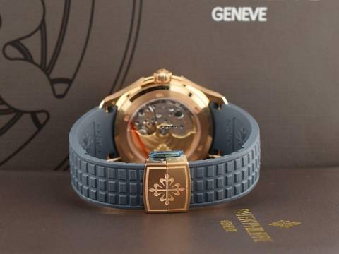 Patek Philippe Aquanaut Annual Calendar Rose Gold 5261R-001 new - Full Set ITA Il modello Aquanaut, lanciato nel 1997, si impone come un modello di eleganza sportiva, combinando alla perfezione eccellenza tecnica, prestazioni di alto livello e originalità di design. Primo Calendario Annuale della collezione Aquanaut (2023), questo modello a carica automatica presenta un Calendario completo giorno/data/mese che richiede una sola correzione manuale all'anno, a fine febbraio. Calibro 26-330 S QA LU Indicazione invertita del giorno (ore 3), del mese (ore 9) e delle fasi lunari (ore 12). Data in una finestrella a ore 6. Quadrante blu-grigio con motivo Aquanaut in rilievo. Numeri applicati in oro rosa e lancette a bastone, tutti con rivestimento luminescente bianco. Cassa in oro rosa da 39,9 mm con finiture lucide e satinate a contrasto. Cinturino integrato in materiale composito blu-grigio con motivo Aquanaut e chiusura deployante brevettata in oro rosa. Indicazione invertita del giorno (ore 3), del mese (ore 9) e delle fasi lunari (ore 12). Data in una finestrella a ore 6. Meccanismo del calendario annuale che richiede una sola correzione all'anno, inventato e brevettato da Patek Philippe nel 1996. Quadrante blu-grigio con motivo Aquanaut in rilievo. Numeri applicati in o Cassa in oro rosa da 39,9 mm con finiture lucide e satinate a contrasto. Cinturino integrato in materiale composito blu-grigio con motivo Aquanaut e questo modello a carica automatica in oro rosa presenta un calendario completo giorno/data/mese che richiede una sola correzione manuale all'anno, a fine febbraio. Lo stile "sporty chic contemporaneo" è accentuato dal colore blu-grigio del quadrante e dal cinturino con il motivo Aquanaut in rilievo. Primo Calendario Annuale della collezione Aquanaut (2023), questo modello a carica automatica presenta un Calendario completo giorno/data/mese che richiede una sola correzione manuale all'anno, a fine febbraio. Calibro 26-330 S QA LU Indicazione invertita del giorno (ore 3), del mese (ore 9) e delle fasi lunari (ore 12). Data in una finestrella a ore 6. Quadrante blu-grigio con motivo Aquanaut in rilievo. Numeri applicati in oro rosa e lancette a bastone, tutti con rivestimento luminescente bianco. Cassa in oro rosa da 39,9 mm con finiture lucide e satinate a contrasto. Cinturino integrato in materiale composito blu-grigio con motivo Aquanaut e chiusura deployante brevettata in oro rosa. Indicazione invertita del giorno (ore 3), del mese (ore 9) e delle fasi lunari (ore 12). Data in una finestrella a ore 6. Meccanismo del calendario annuale che richiede una sola correzione all'anno, inventato e brevettato da Patek Philippe nel 1996. Quadrante blu-grigio con motivo Aquanaut in rilievo. Numeri applicati in o Cassa in oro rosa da 39,9 mm con finiture lucide e satinate a contrasto. Cinturino integrato in materiale composito blu-grigio con motivo Aquanaut e questo modello a carica automatica in oro rosa presenta un calendario completo giorno/data/mese che richiede una sola correzione manuale all'anno, a fine febbraio. Lo stile "sporty chic contemporaneo" è accentuato dal colore blu-grigio del quadrante e dal cinturino con il motivo Aquanaut in rilievo. Il modello Aquanaut, lanciato nel 1997, si impone come un modello di eleganza sportiva, combinando alla perfezione eccellenza tecnica, prestazioni di alto livello e originalità di design.