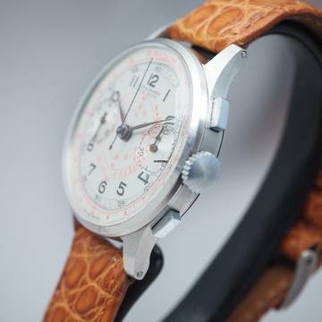 Ulysse Nardin Chronograph Vintage Schnecken-Tachymeter-Skala um 1940 Stahl/Leder Box + papers