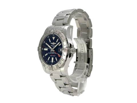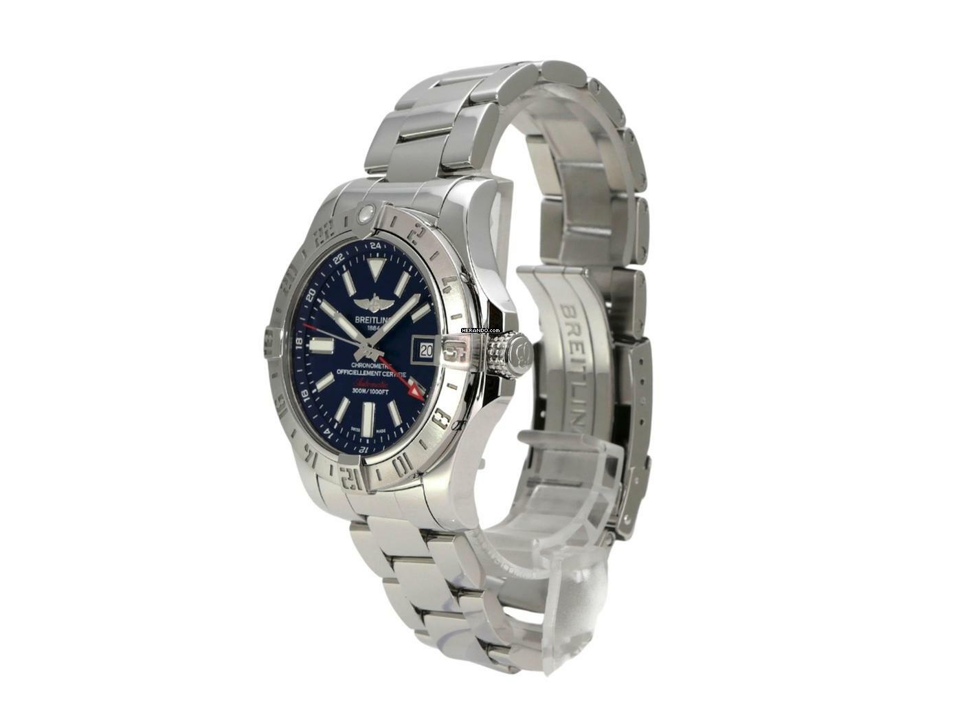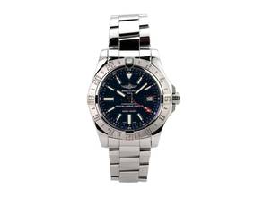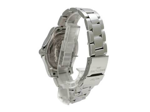 Gehäuse Edelstahl poliert, Gehäusedurchmesser 43 mm, Gehäusehöhe 12,20 mm, Edelstahl Lünette mit Leuchtpunkt, beidseitig drehbar mit Sperre, Professional III Edelstahl Armband poliert mit Faltschließe, blaues Zifferblatt mit aufgesetzten Leuchtziffern und Leuchtzeiger, Uhrwerk Automatik, Kaliber Breitling 32 mit 21 Steinen, 28.800 A/h, Gangreserve ca. 42 Stunden, Datumsanzeige, zweite Zeitzone, Saphirglas bombiert, doppelseitig entspiegelt, verschraubte Krone mit Flankenschutz, Edelstahlboden verschraubt, wasserdicht bis zu 30 bar.