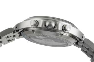 * Wenn die Uhr positiv auf Wasserdichtigkeit getestet wurde, dann gilt diese Eigenschaft zum Zeitpunkt der Messung. Wasserdichtigkeit ist nach DIN 8310 keine bleibende Eigenschaft. Sie sollte jährlich und vor besonderen Belastungen überprüft werden, da die eingebauten Dichtelemente in ihrer Funktion und im täglichen Gebrauch nachlassen. Einflüsse wie starke Temperaturschwankungen, Chlor, Seife oder Salzwasser wirken sich negativ auf die Wasserdichtigkeit aus.