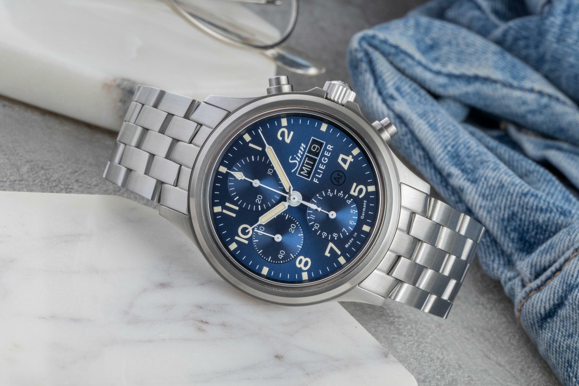 Sinn 358 SA Flieger Chronograph Blue Dial Stahl Automatik Ref. 358.064 B&P 2023