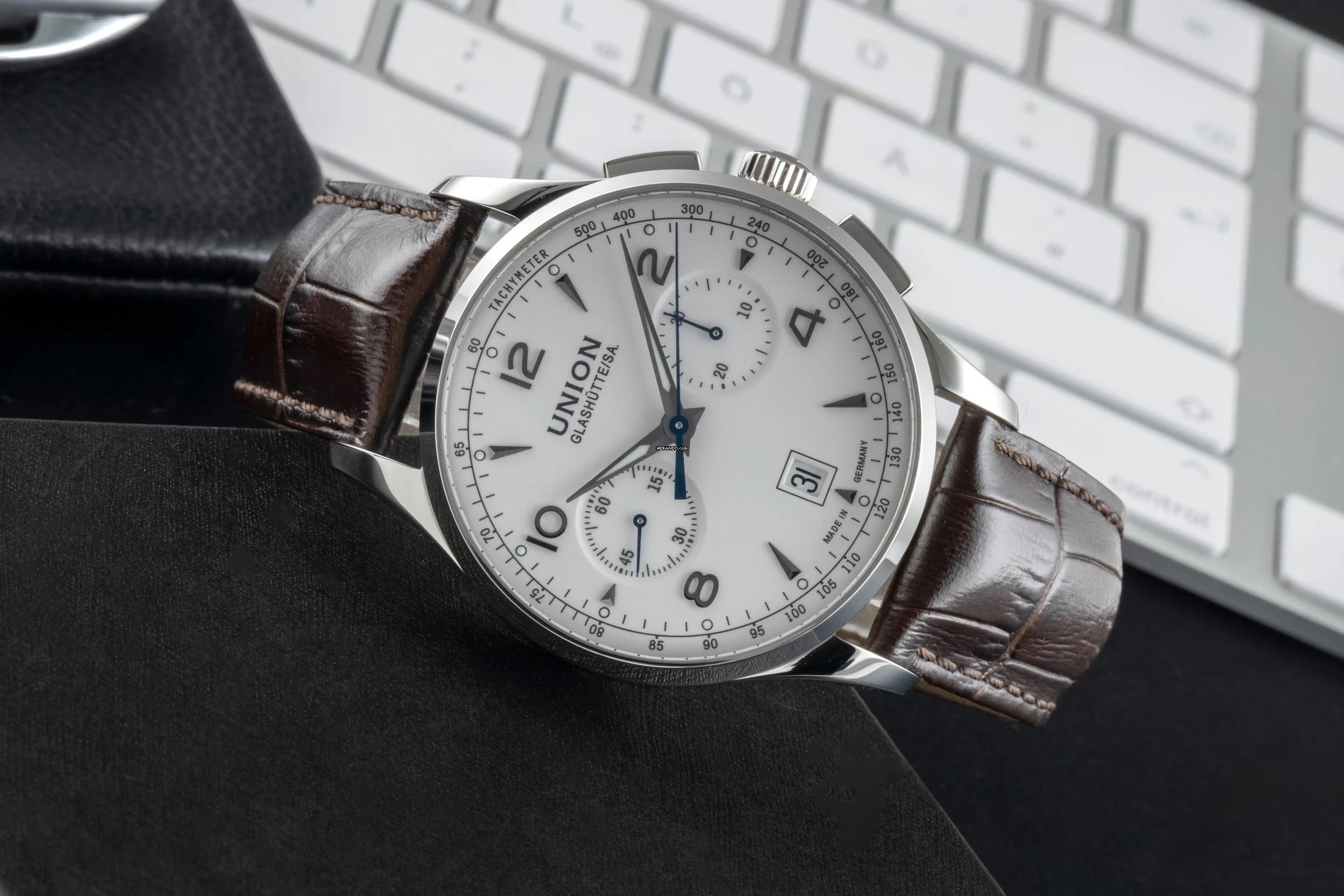 Union Glashütte Noramis Chronograph Stahl Automatik Ref. D008.427.16.017.00 B&P