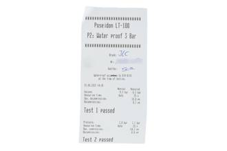 - Wasserdichtigkeit*: ja. Das Prüfprotokoll mit Prüfdruckangabe liegt bei.