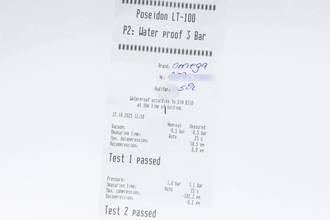 - Wasserdichtigkeit*: ja. Das Prüfprotokoll mit Prüfdruckangabe liegt bei.
