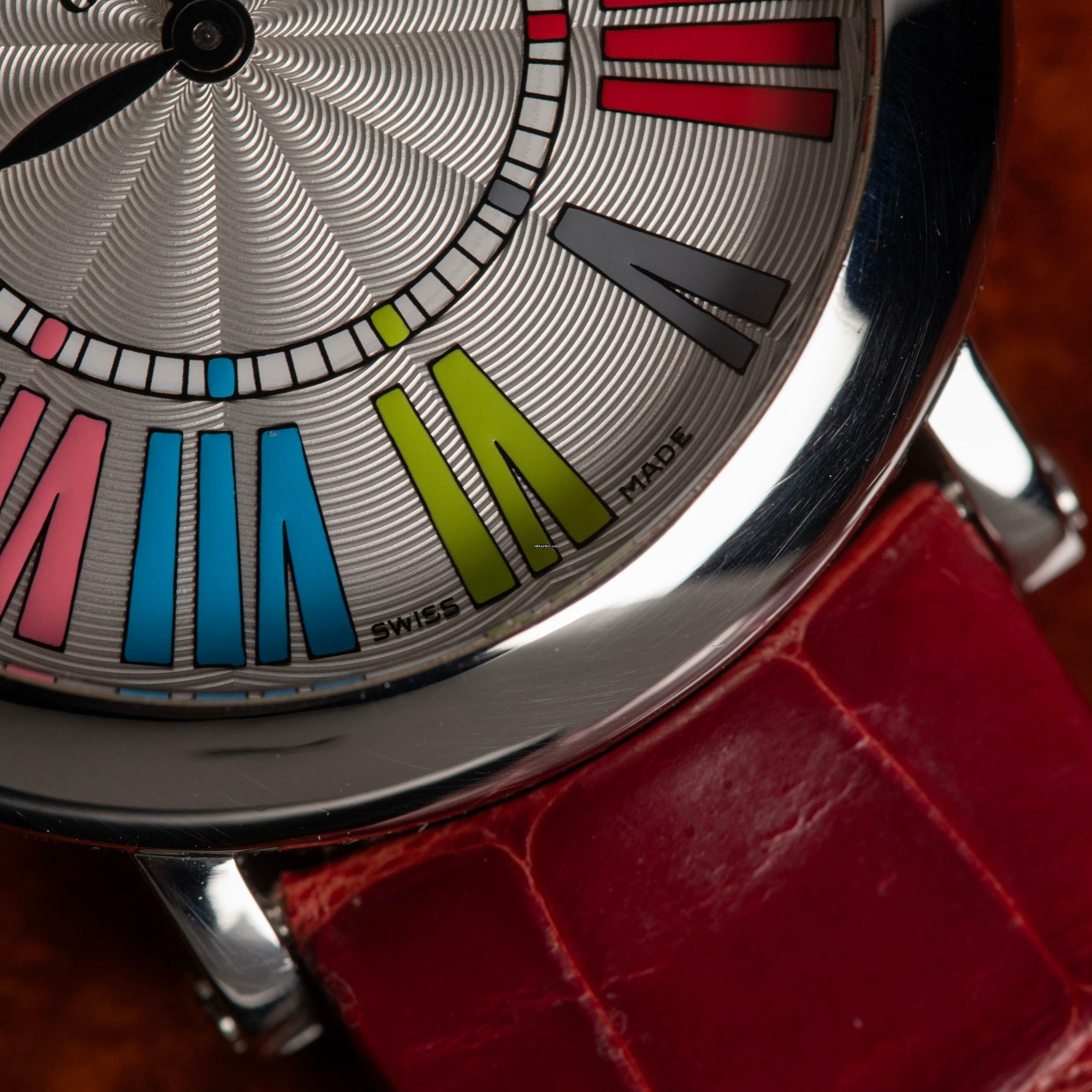 Die Franck Muller Color Dreams 8038 ist ein echtes Statement-Stück, das über das konventionelle Design hinausgeht – sie ist nicht nur eine Uhr, sondern ein tragbares Kunstwerk. Perfekt für Sammler und Kenner, die sowohl technische Exzellenz als auch ausdrucksstarke Schönheit schätzen, bleibt sie eine zeitlose Verkörperung von Kreativität und Handwerkskunst.