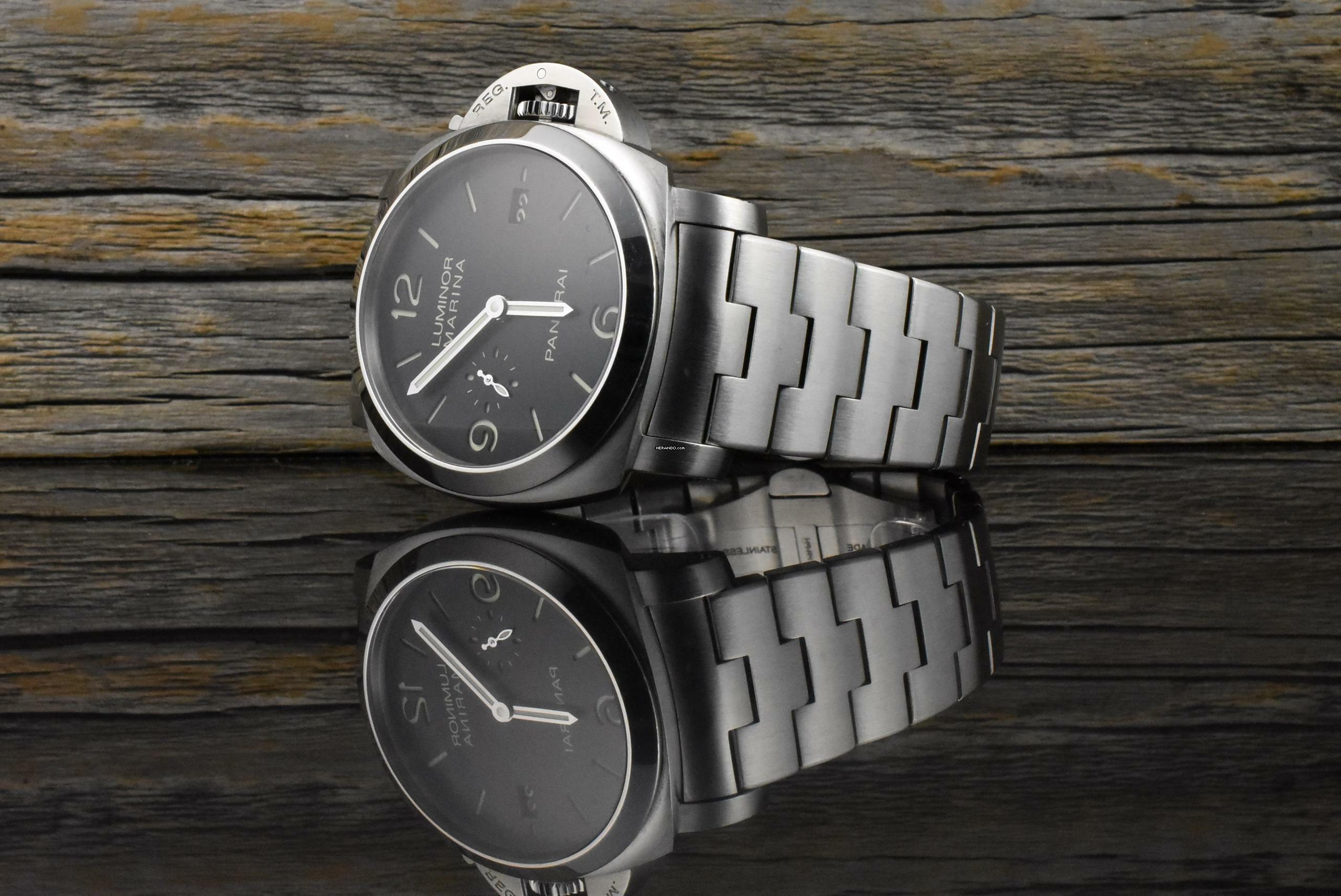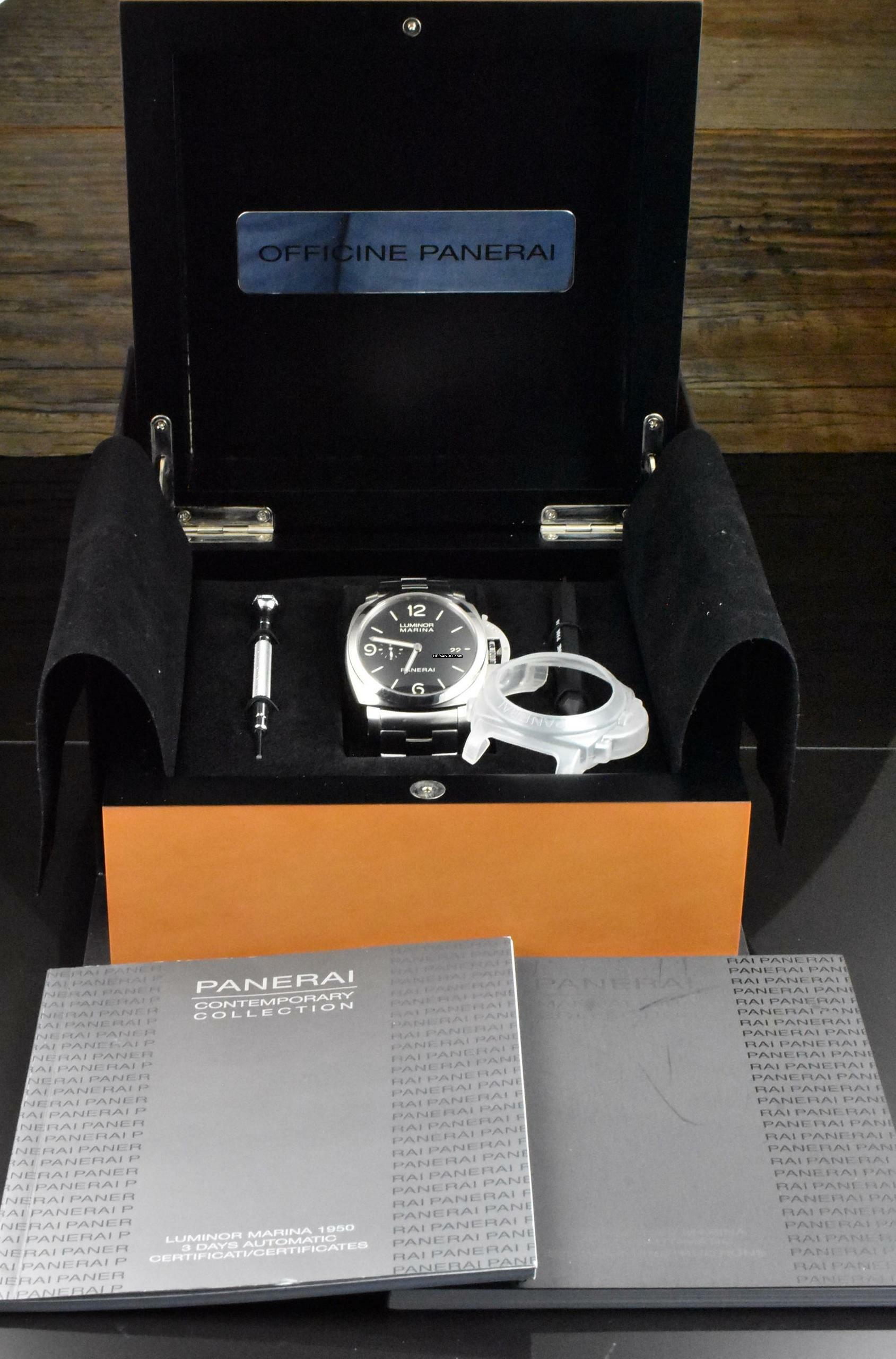 An alle Freunde des guten Geschmacks, angeboten wird eine schöne Panerai Luminor 1950 3 Days Automatic Reverenz PAM00328 in Stahl am seltenen Stahlarmband – aus dem Jahr 2010 mit Box Papieren im Full Set!