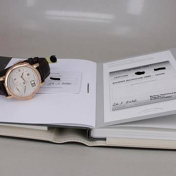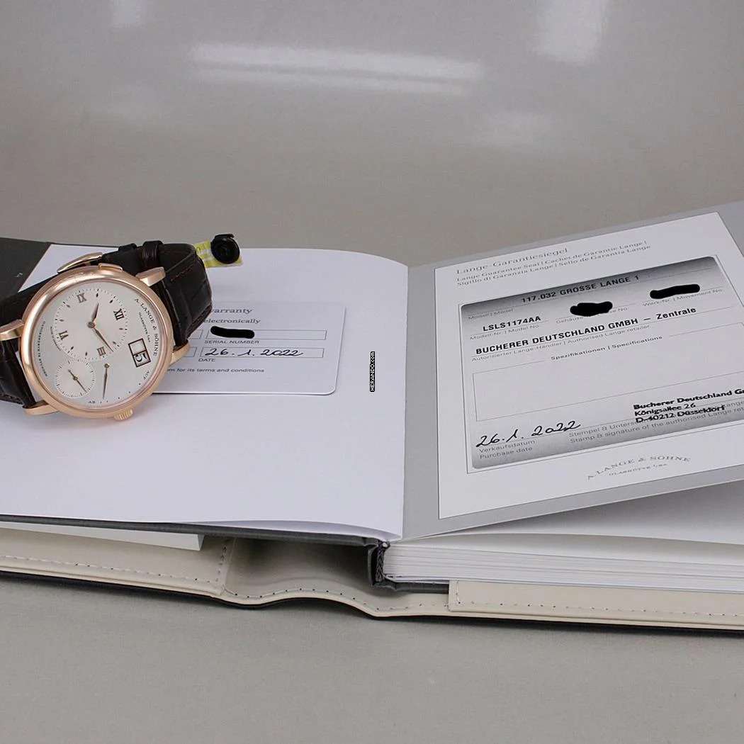 Lieferumfang: A.LANGE & SÖHNE Grosse Lange 1, Garantiepapiere (01/2022), Bedienungsanleitung, Uhrenbox, Umverpackung, Juwelier FineART Rechnung