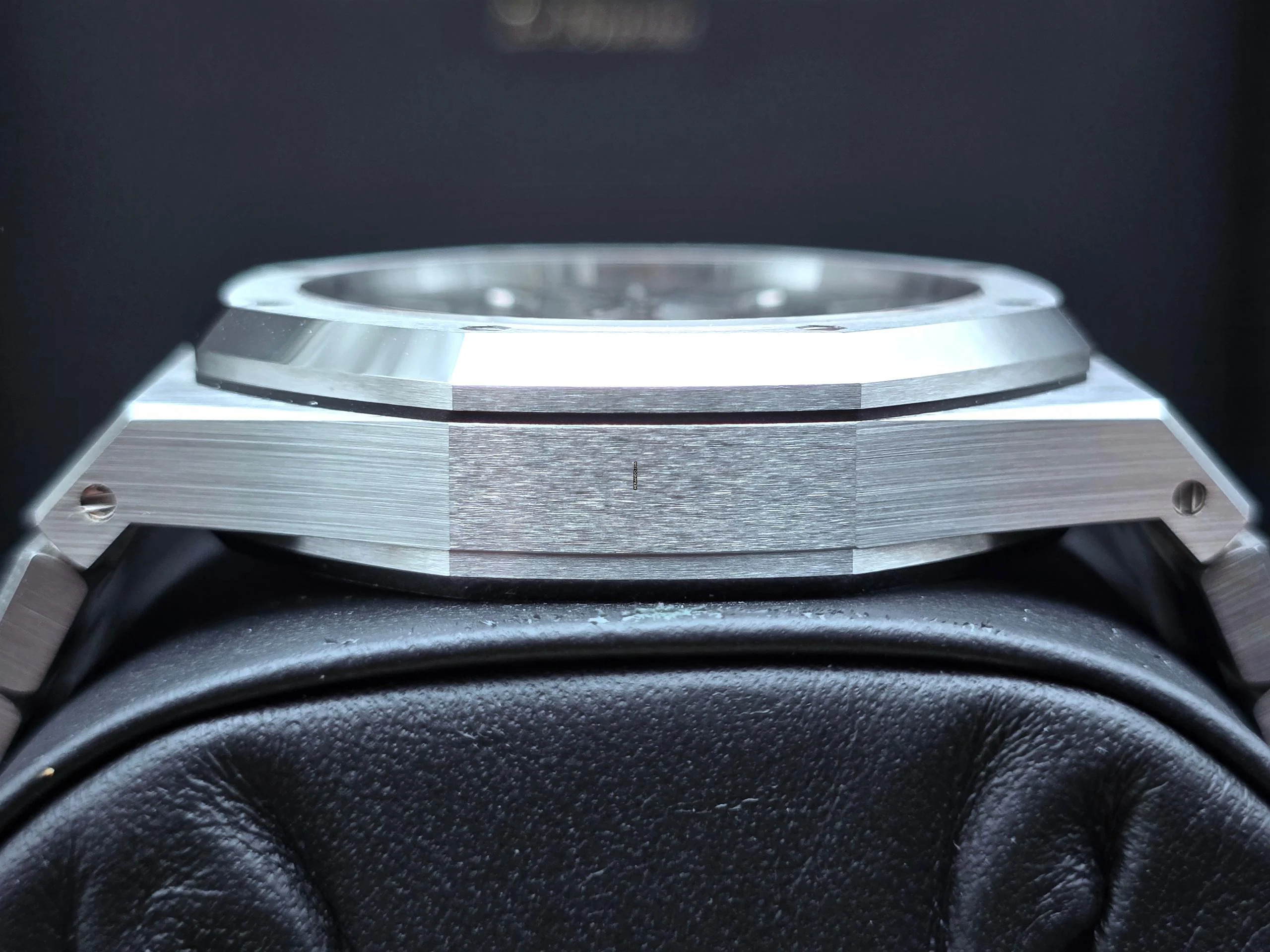 The watch will be delivered with the original box, papers, and 8 month's international factory warranty. Warranty card date 6-2021, warranty until 6-2026. The watch is in Unworn/New Condition.
