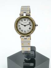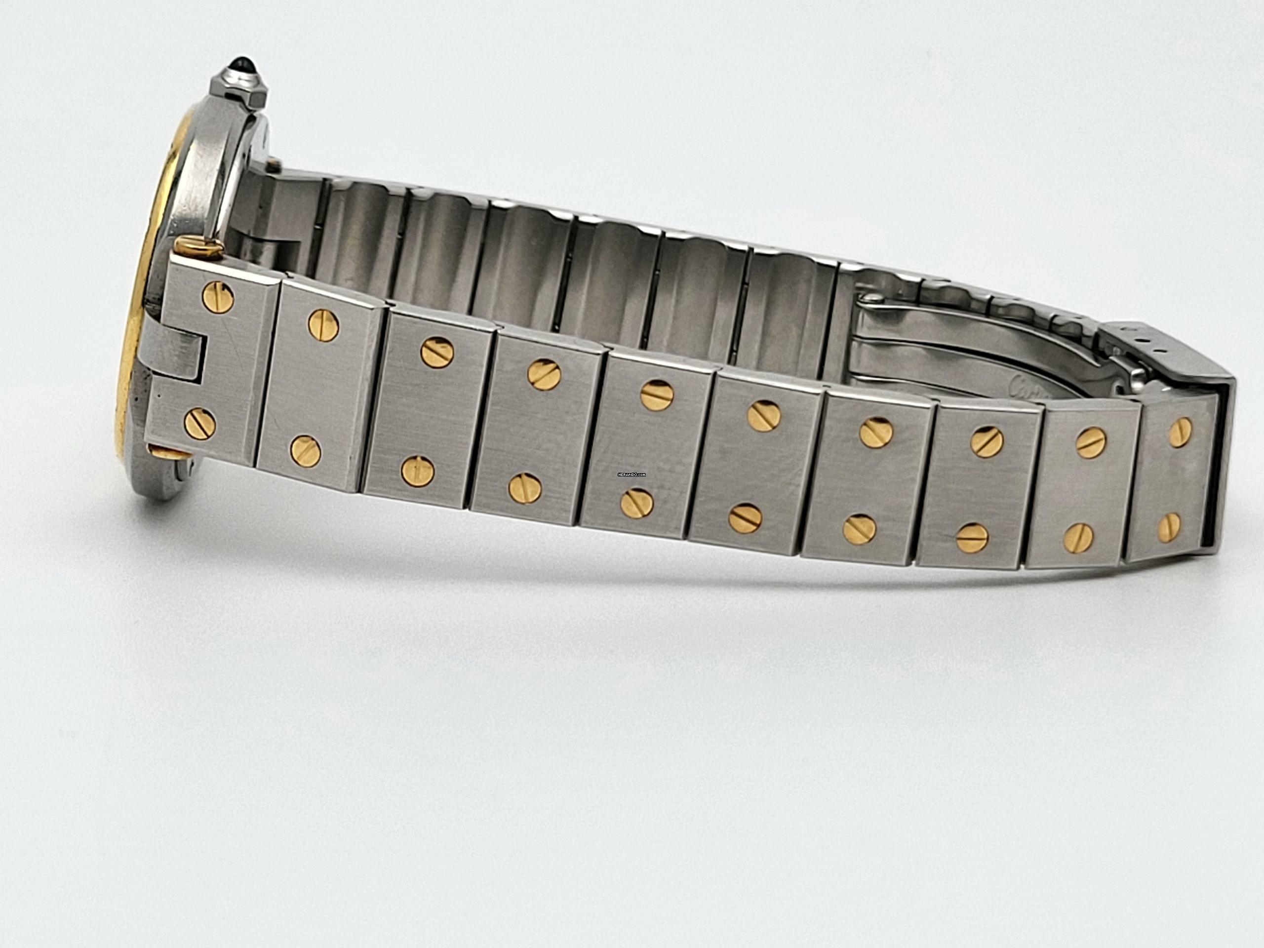Zum Verkauf steht diese schöne Cartier Santos Ronde 27 mm. in Stahlgold mit weissem Zifferblatt, 18 Kt. Gold-Lünette und Stahlgold-Armband. Die Uhr befindet sich in einem optisch und technisch guten Zustand mit normalen Gebrauchsspuren, dies sollte auf den Zoom-Bildern erkennbar sein!